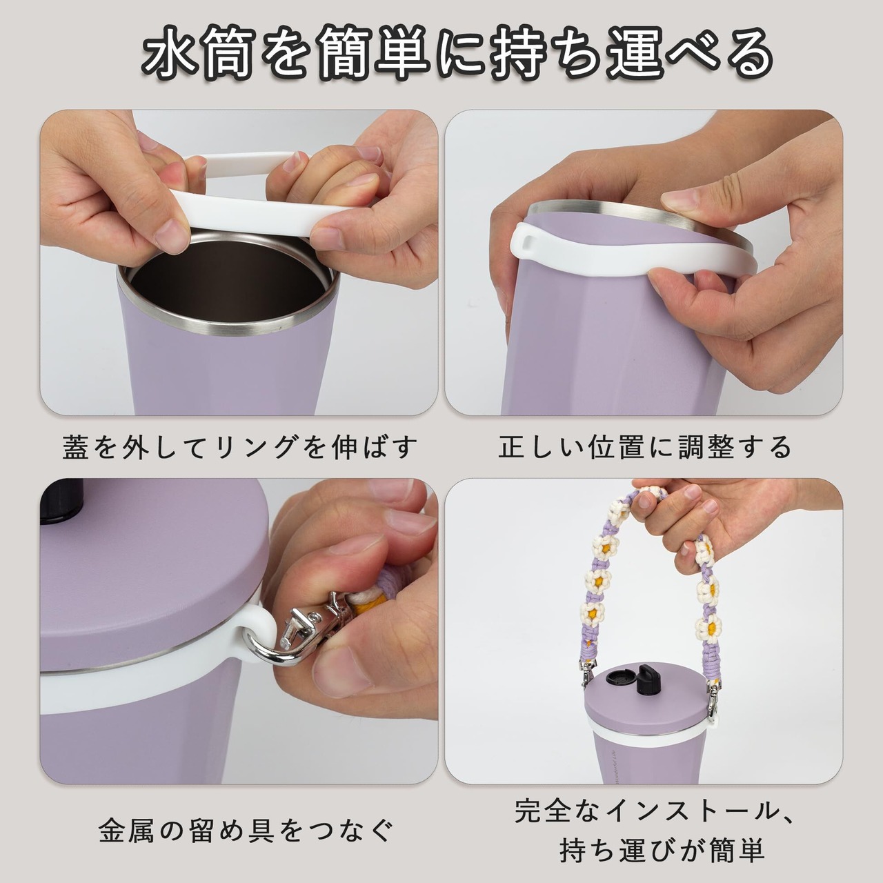 持ち運びが簡単:カップホルダーは、吊り下げられたカップのバランスを保ち、落下を防止し、液体のこぼれを防ぎます。ホットおよびコールドドリンクに対応し、手をやけどする心配がありません。