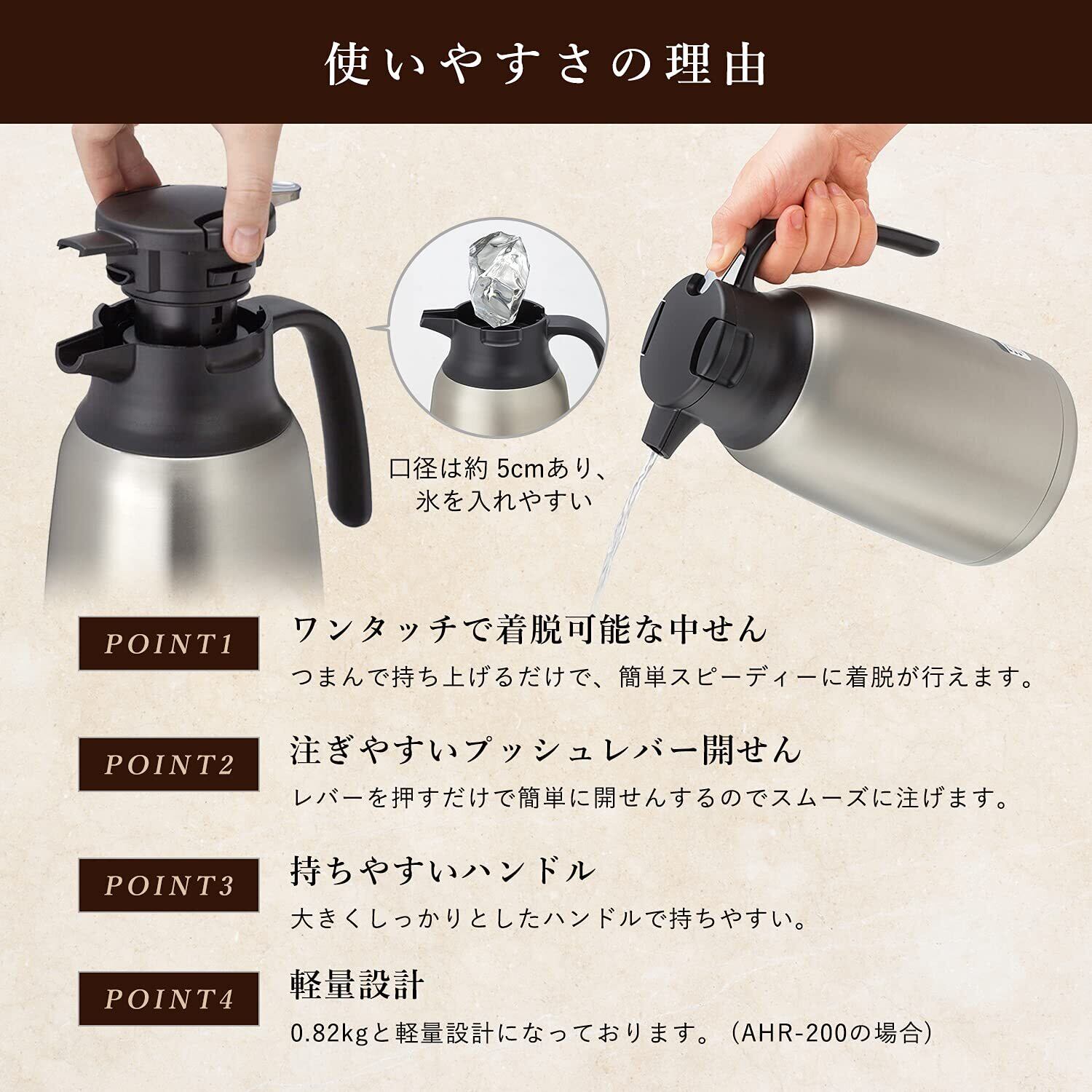 【人気商品】ピーコック 保温ポット 卓上ポット 魔法瓶 ステンレス ハンディ ポット 保温 保冷 2.0L AHR-200 XA