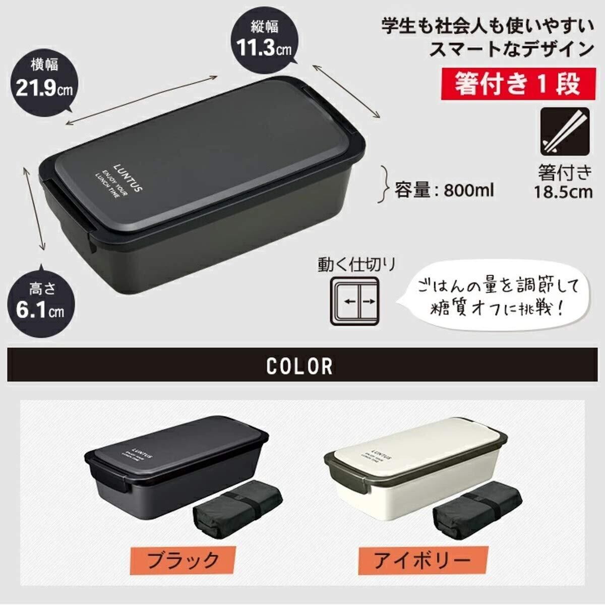 アスベル 弁当箱 ランチボックス レンジ・食洗器対応 汁モレ防止 1段 ランタス FC-800(バッグ付)Ag抗菌 ブラック