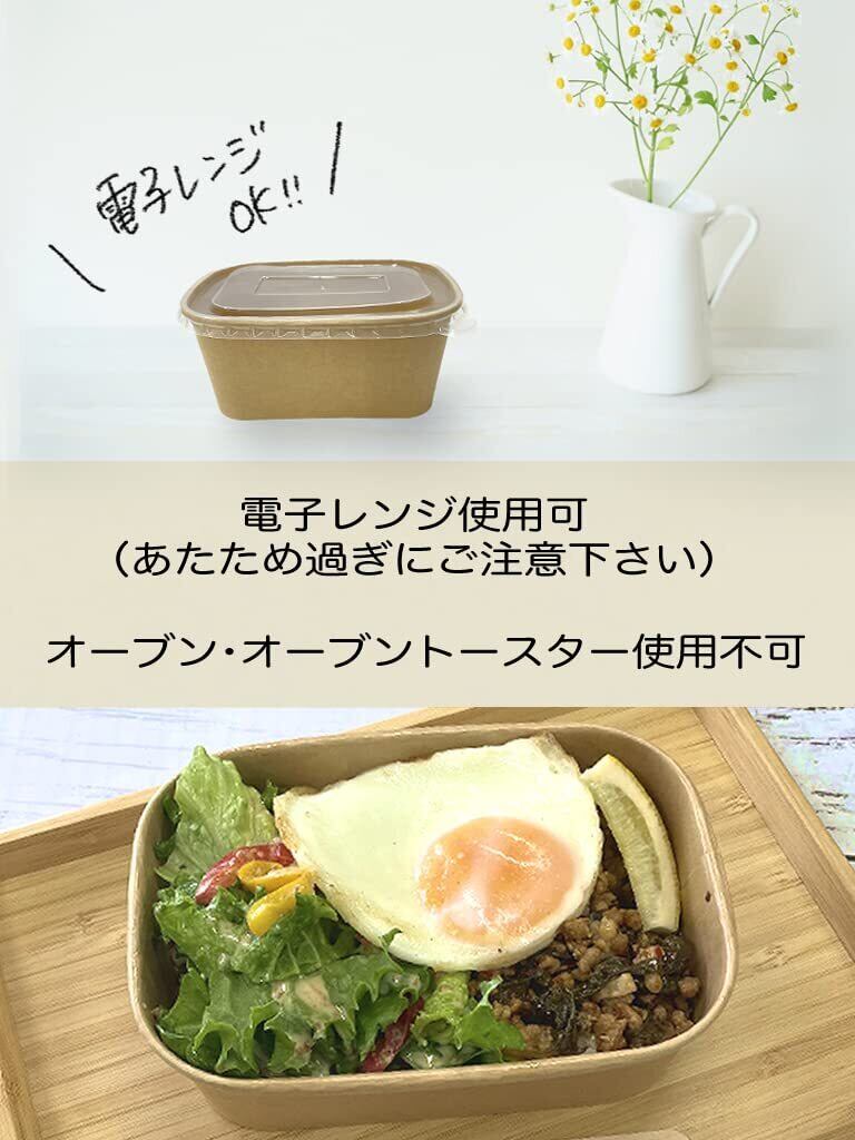 【ナチュラルでおしゃれなシンプルデザイン】 電子レンジ対応 紙製 弁当容器 未晒