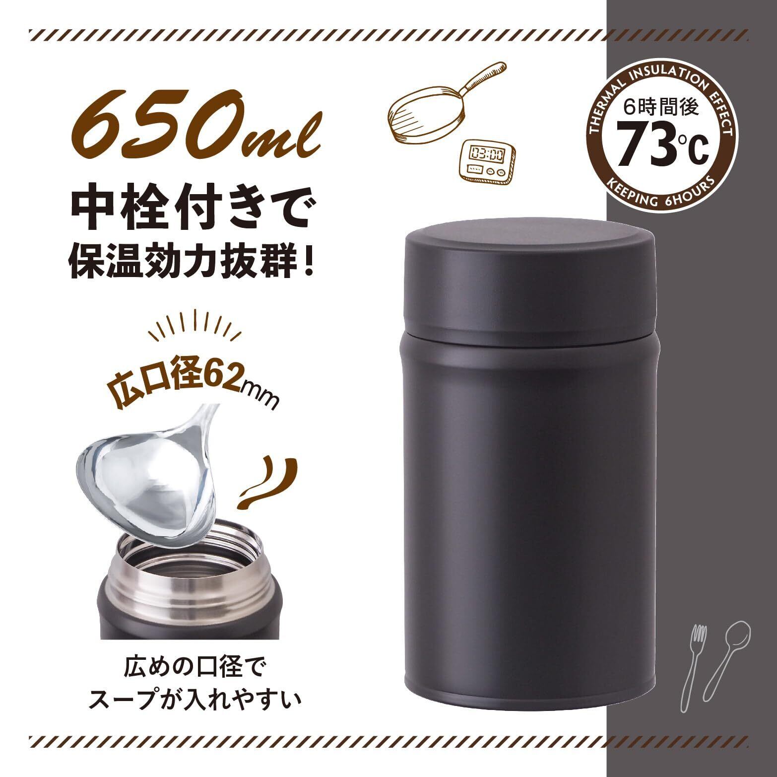 容量:0.65L 保温効力:73度以上(6時間)9度以下(6時間)