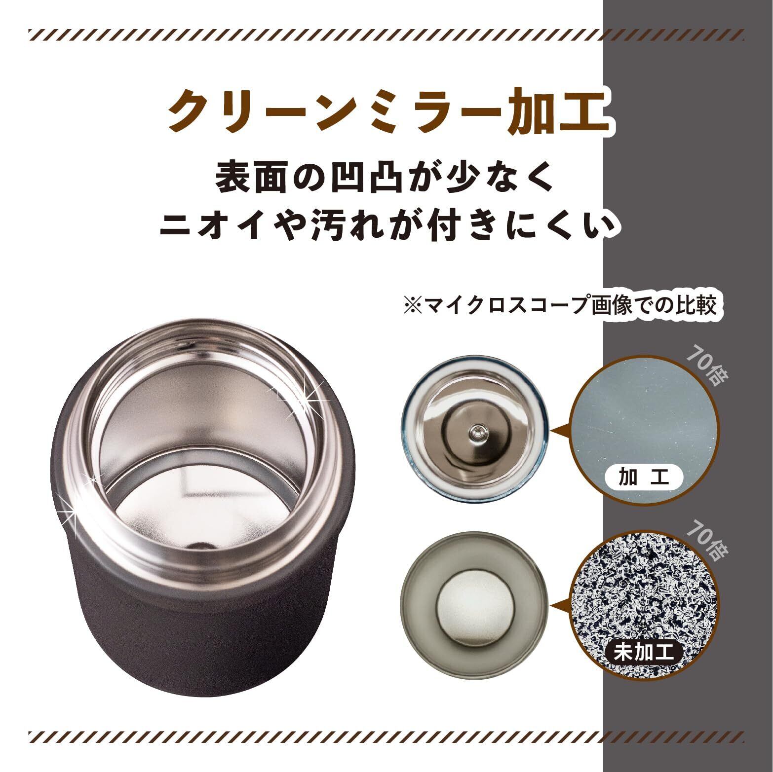 真空2重構造!飲み物だけでなく、温かいお料理や、冷たいお料理を持ち運び出来ます。