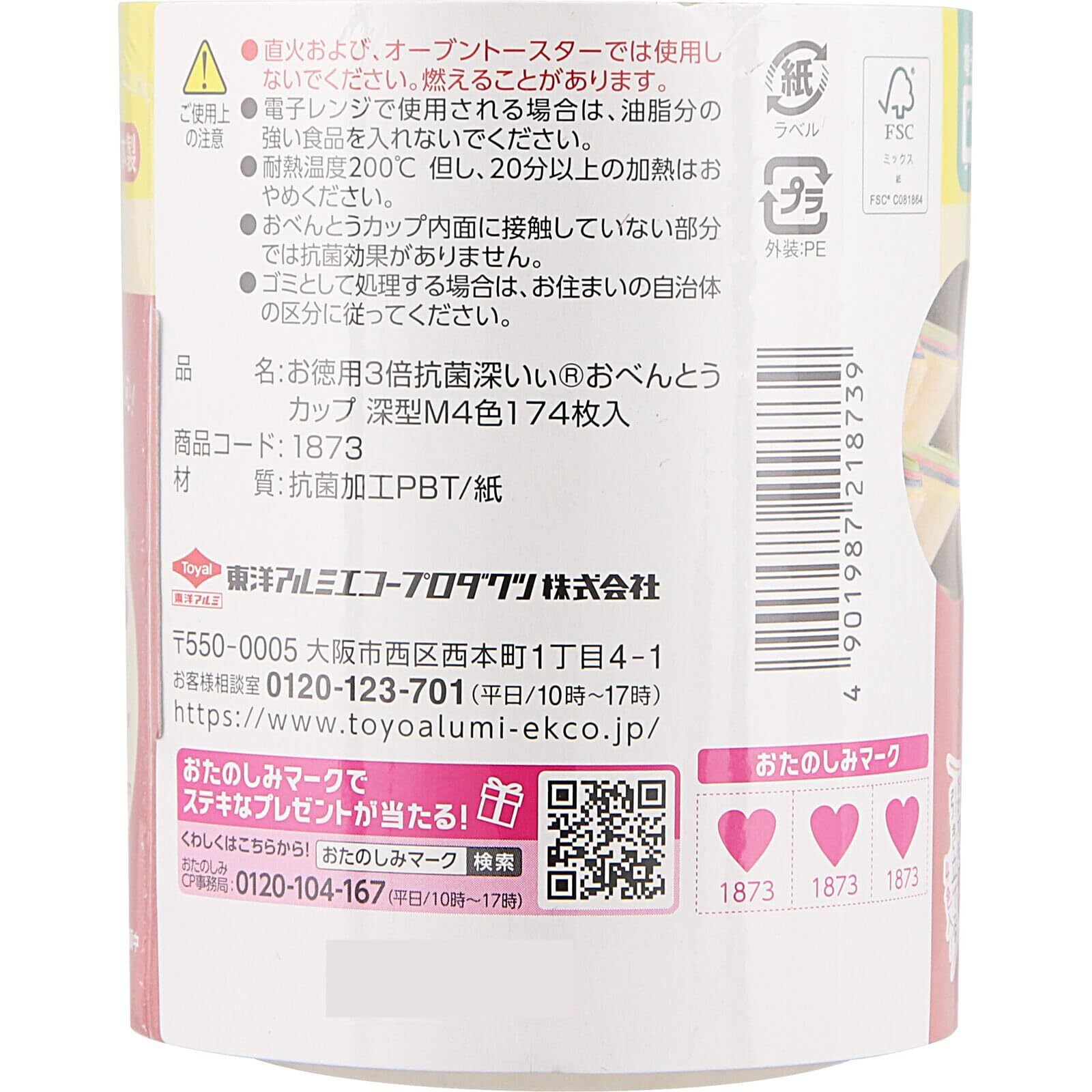東洋アルミ お弁当 おかずカップ M 174枚入 お徳用3倍 深型 日本製 抗菌 通常品の1.3倍深い 電子レンジ対応 S1873