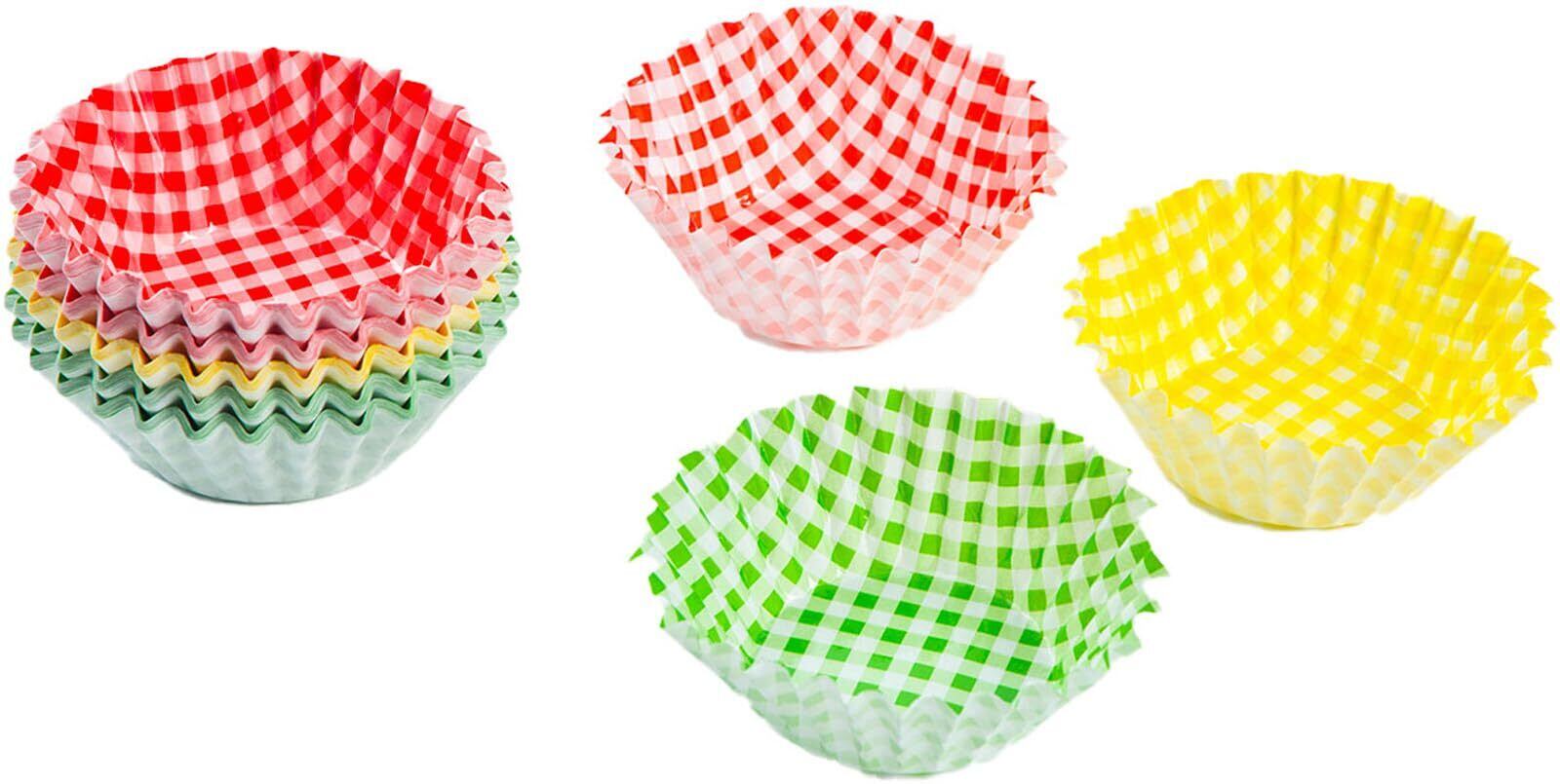 下村企販 お弁当カップ 8号 125枚 電子レンジ対応 チェック柄 カラフル おかずカップ 小分け 使い捨て ランチ 子ども 運動会 色映え 赤 黄 緑 31735