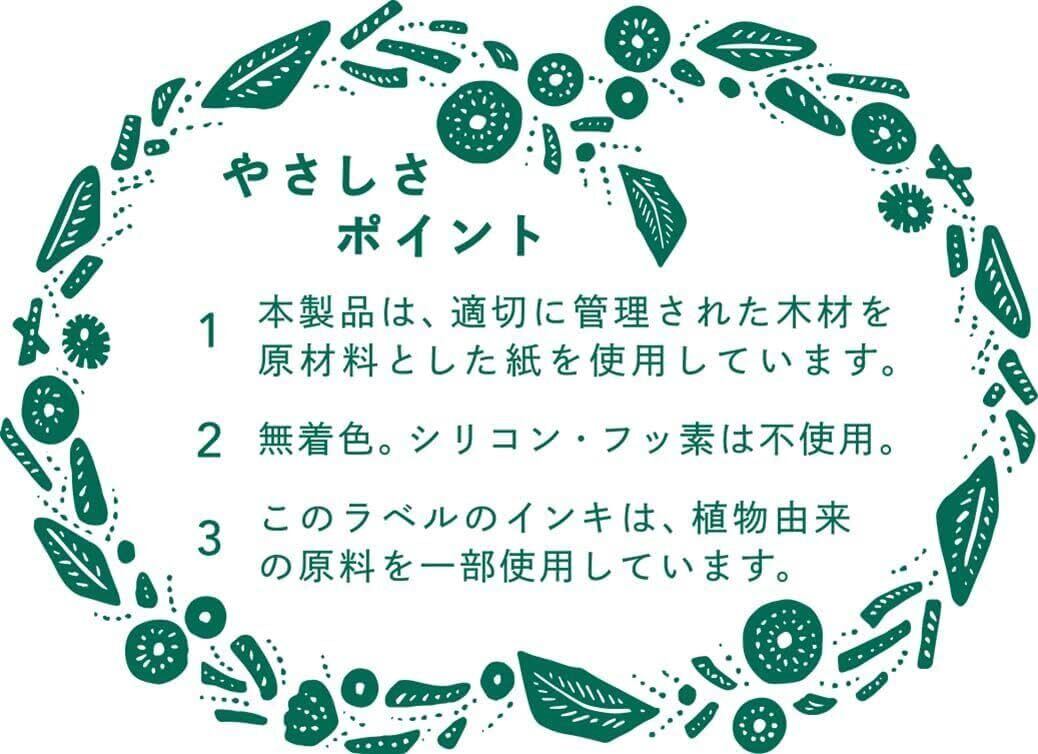 無着色、シリコン、フッ素不使用の環境配慮型商品。