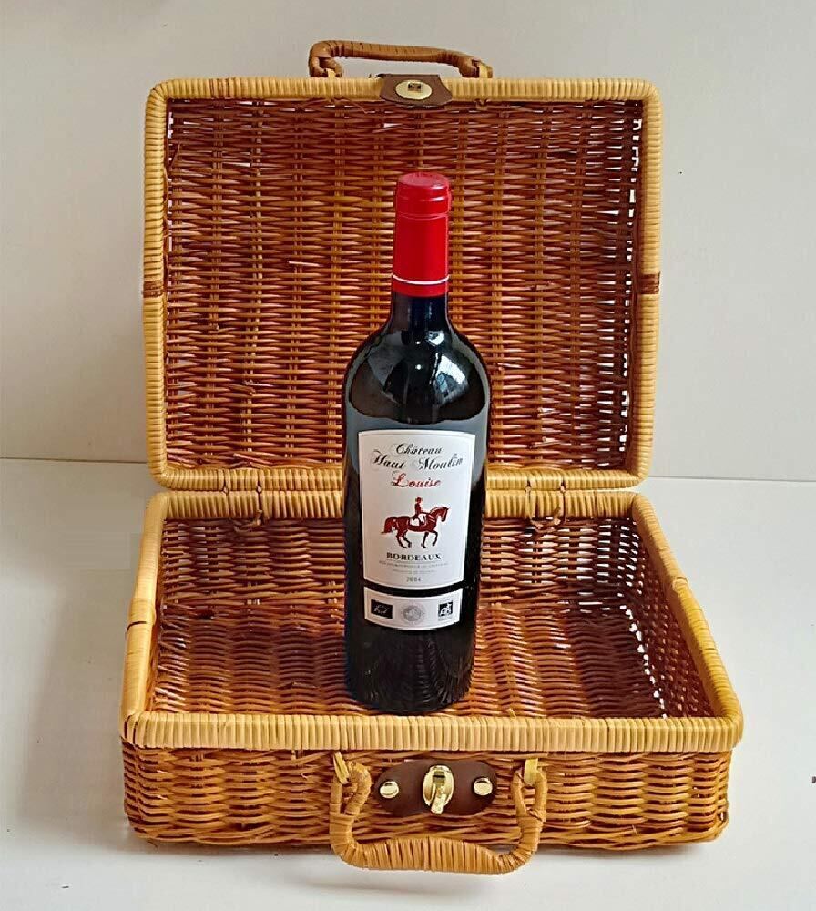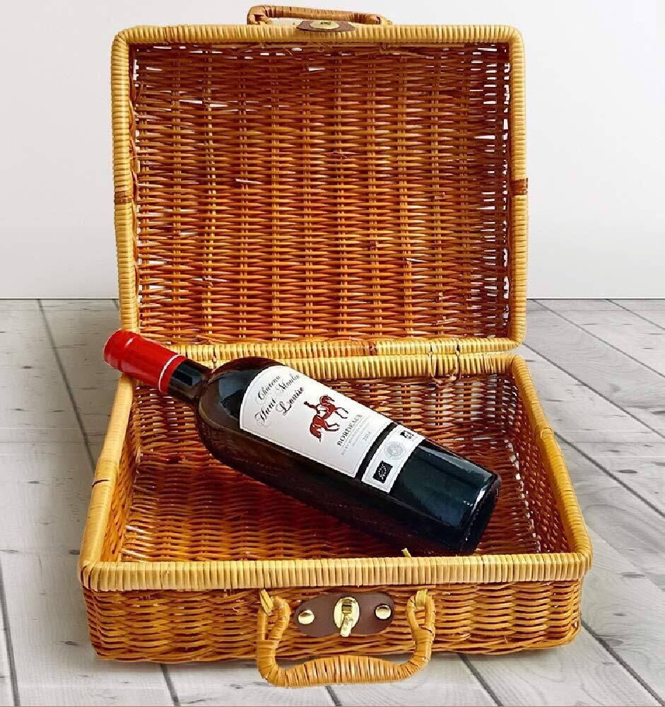 ピクニック バスケット 手 持ち サイズ フタ 蓋 付き 旅行 行楽 花見 遠足 籠 かご 22 × 16 × 10cm