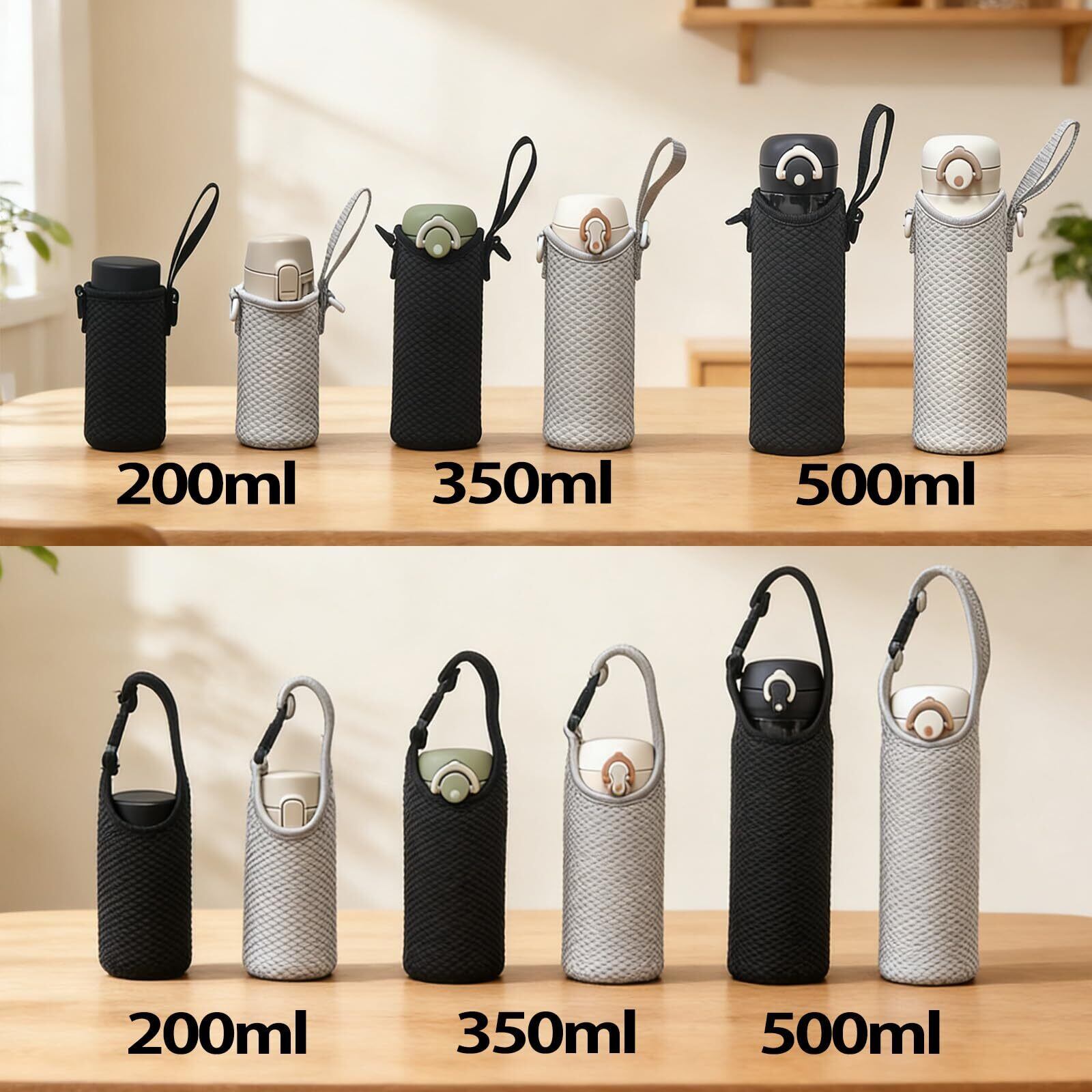 500ml水筒にピッタリ!弾力素材で汎用性抜群<ー> 弾力性に優れた素材で作られ、直径約6.5cmの水筒に対応。 500mlの魔法瓶・水筒にぴったりフィットし、サーモス・象印・タイガー・スケールなど人気ブランドにも対応可能です。(600mlサイズはややきついため、ご注意ください)