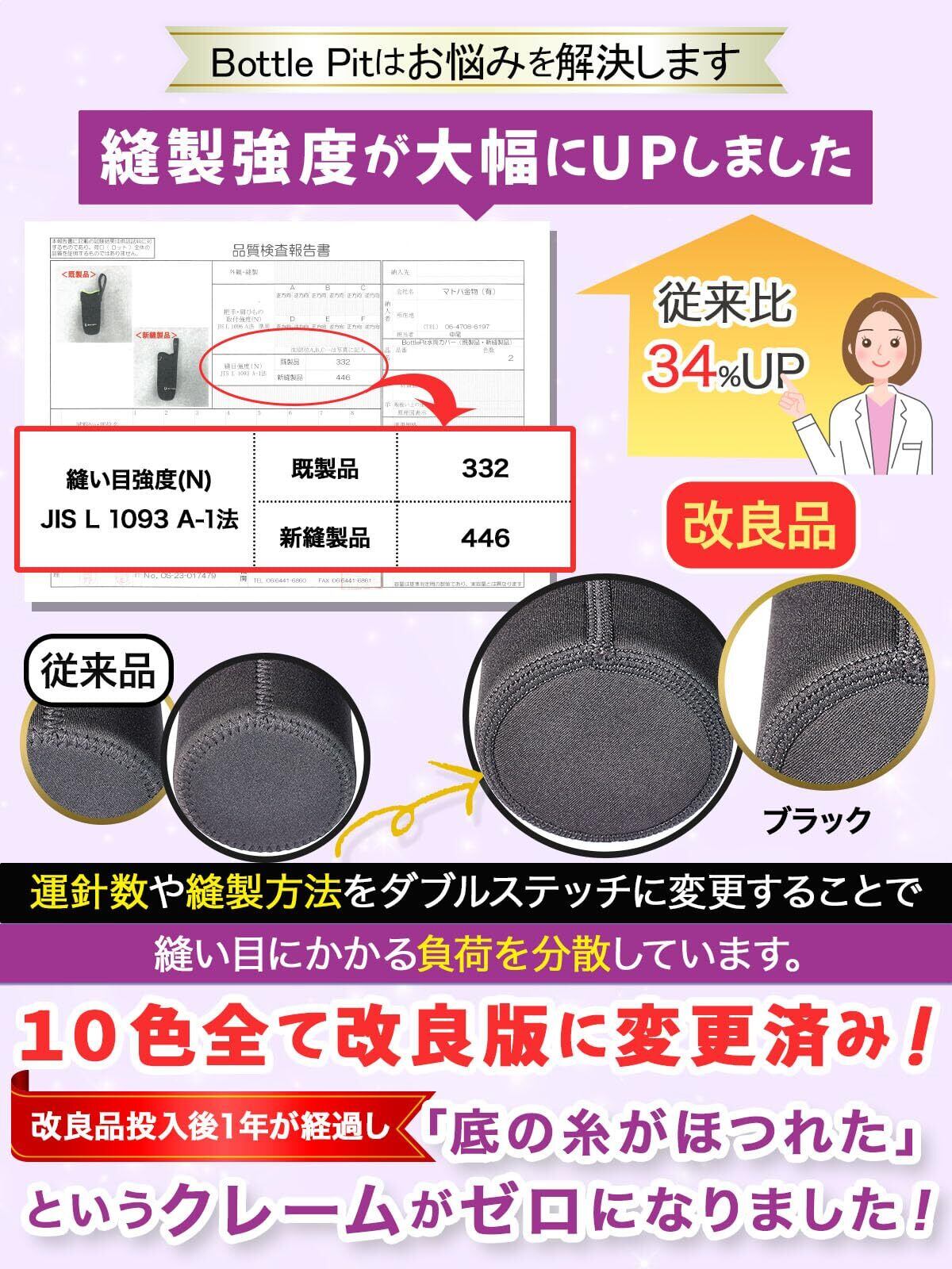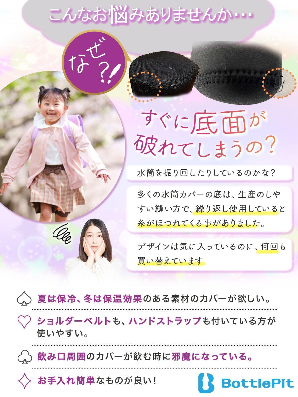※水筒は付属しません。【底の耐久性アップ版】使用糸を6倍に増やし、底の縫製強度が34%アップしました。耐久性と耐熱性のあるネオプレン素材でぴったりフィットの水筒カバーでしっかりホールド。水筒をキズから守ります。ネオプレン素材だから保温性も抜群。金属フック採用で耐久性強化。お子さまが少々やんちゃに扱っても壊れにくく設計しました。