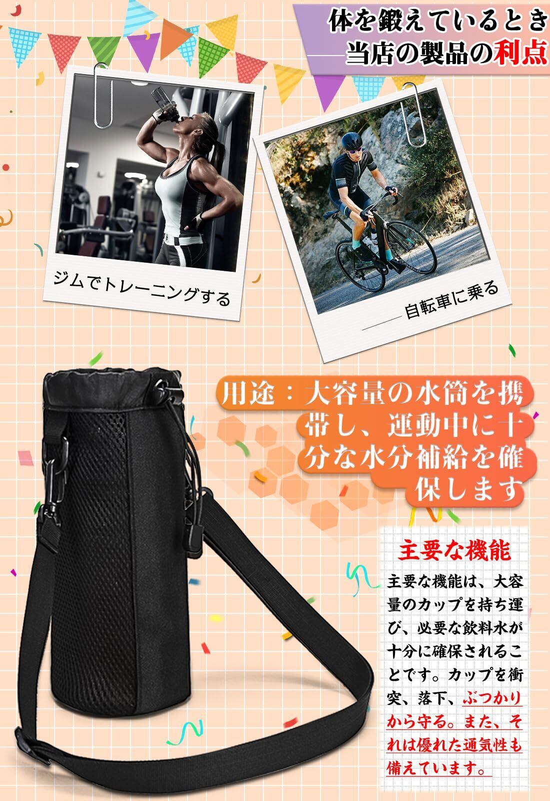 水筒カバー800-1000ml アウトドア/フィットネス/通勤/旅行/サイクリング 手持ち・腰掛け・斜めがけタイプ ベルト調節でき (ブラック)