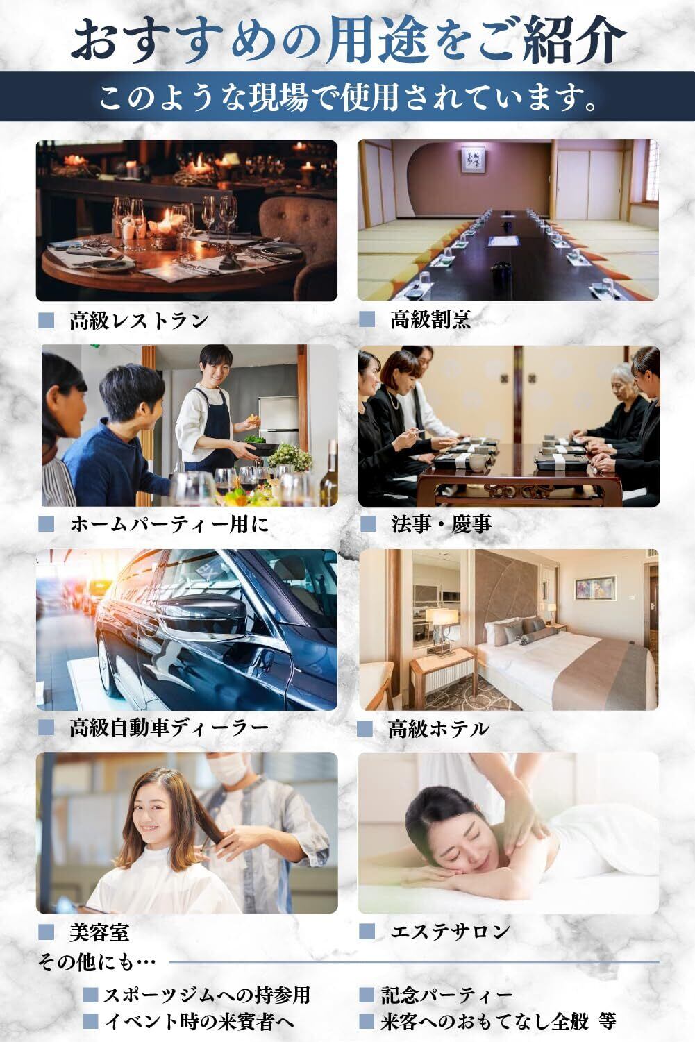 【採用実績】高級ホテル、高級レストランや高級割烹、医療や介護の現場でも採用されている実績があります。大切なお客様のおもてなしをされる方、不特定多数のお客様をお迎えする施設、サービス業の方にご評価いただいております。
