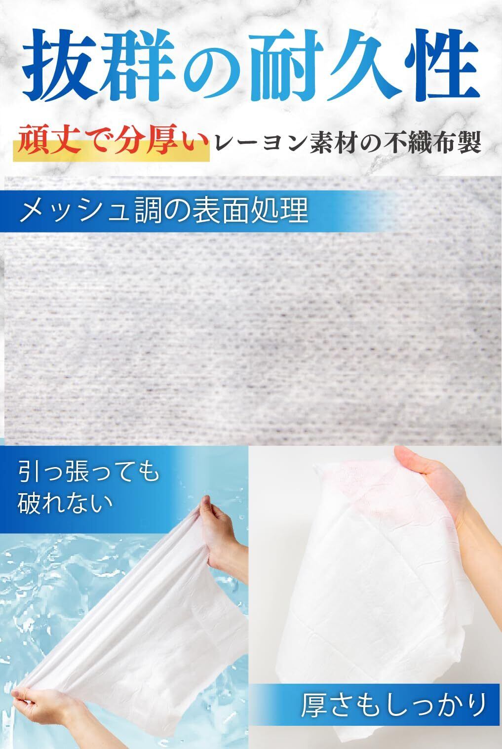 【超大判・レーヨン不織布】頑丈で分厚い不織布製のおしぼりです。280mm×300mmの超大判サイズでしっかりした頑丈な不織布でできているため、体拭きやおしり拭き、お掃除にもご使用可能です。