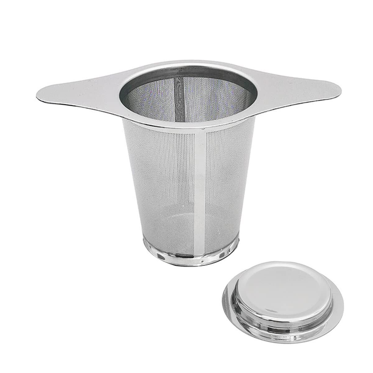 【特価セール】Desirable 茶こし プロ推薦 ティーストレーナー ステンレス製 超極細 メッシュ 茶葉濾過 深型 マグ、カップ、ポット用茶漉し 双方持ち手 蓋付き (1)