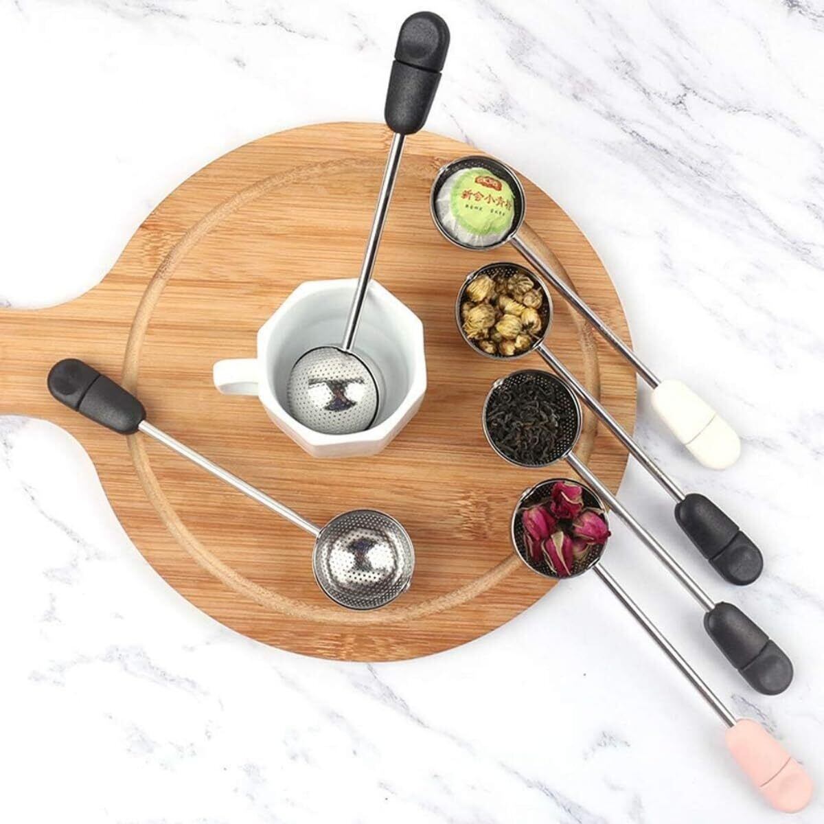 【滑り止めハンドル】滑り止めの長いハンドルの設計がおり、正確で、緩みにくく、やけど防止、実用的であり茶こしがカップに落ちるのを防ぐこともできます。
