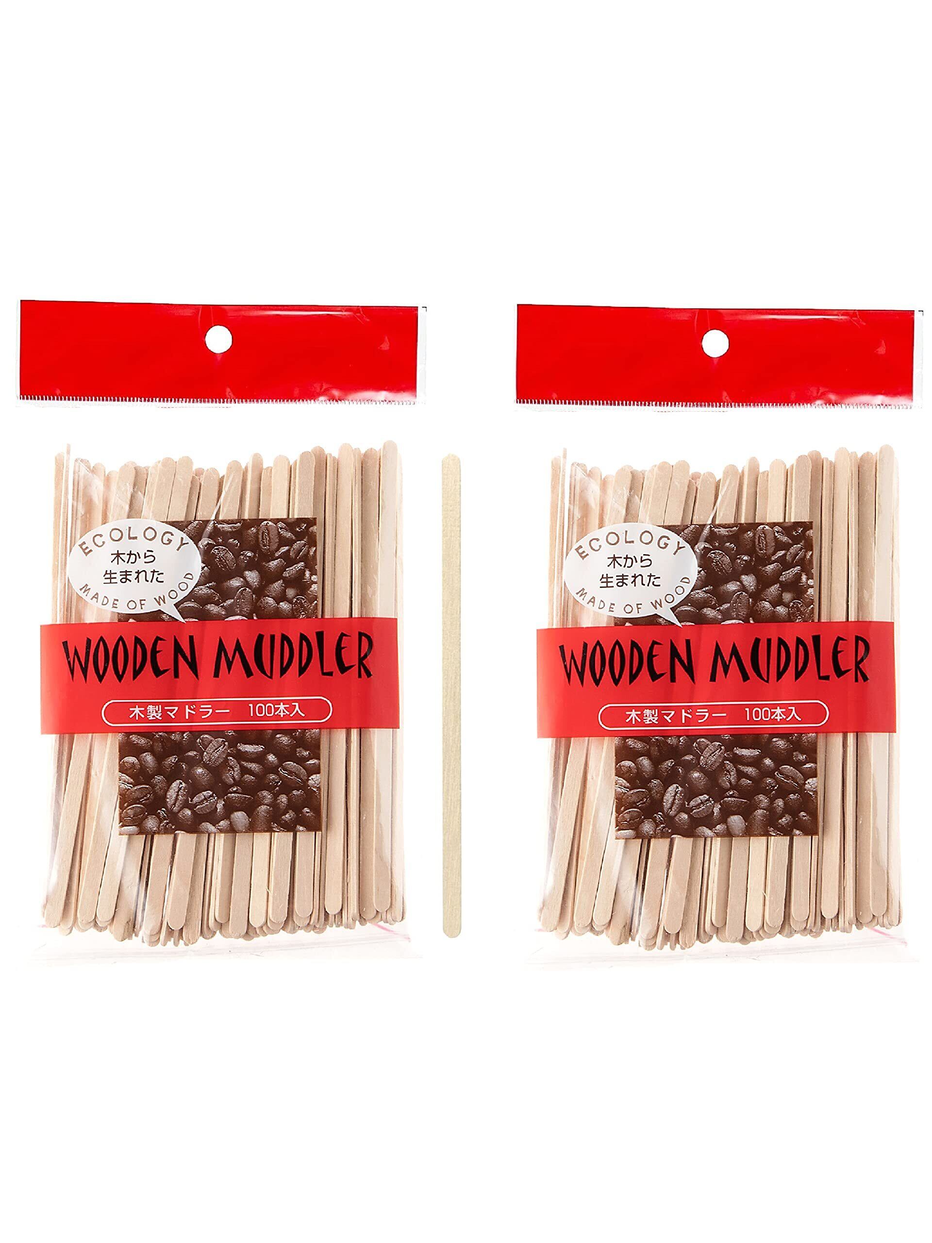ストリックスデザイン マドラー 使い捨て 木製 200本 (100本 ×2個セット) 14cm 白樺 チャック付き内袋付き コーヒー 紅茶 業務用 大容量 MA-272