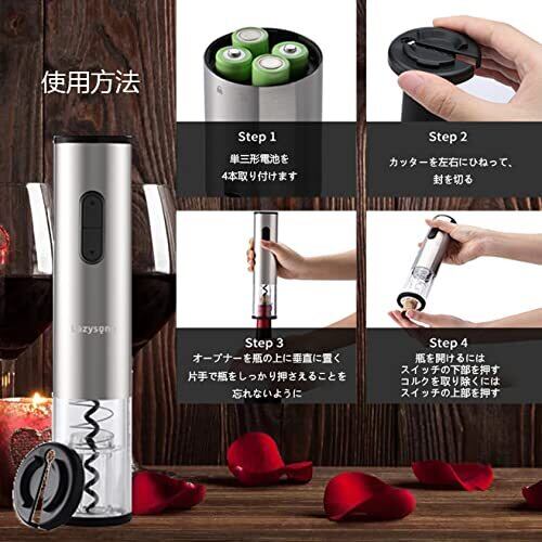 【電池式軽量、便利 】単三形電池4本電池を取り付けるタイプです。充電式よりすぐに使用できます。非常に軽くて扱いやすいです。省エネルギーで使用頻度が高い方でも便利に使えます。ただボタンを押すだけで、女性とお年寄りでも簡単にコルクが抜けます。