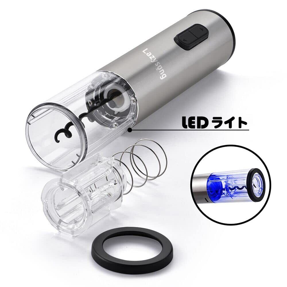 【おしゃれなデザイン】本体はステンレス素材を採用し、銀色で高級感が見えます。エレガントなワインとぴったり合います。透明の作業区でLEDライトがあり、青いライトがでますので、おしゃれ感が溢れます。