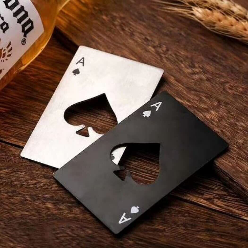 栓抜き おしゃれ トランプ 2枚セット スペード エース カード タイプ 瓶 蓋 オープナー ブラック シルバー