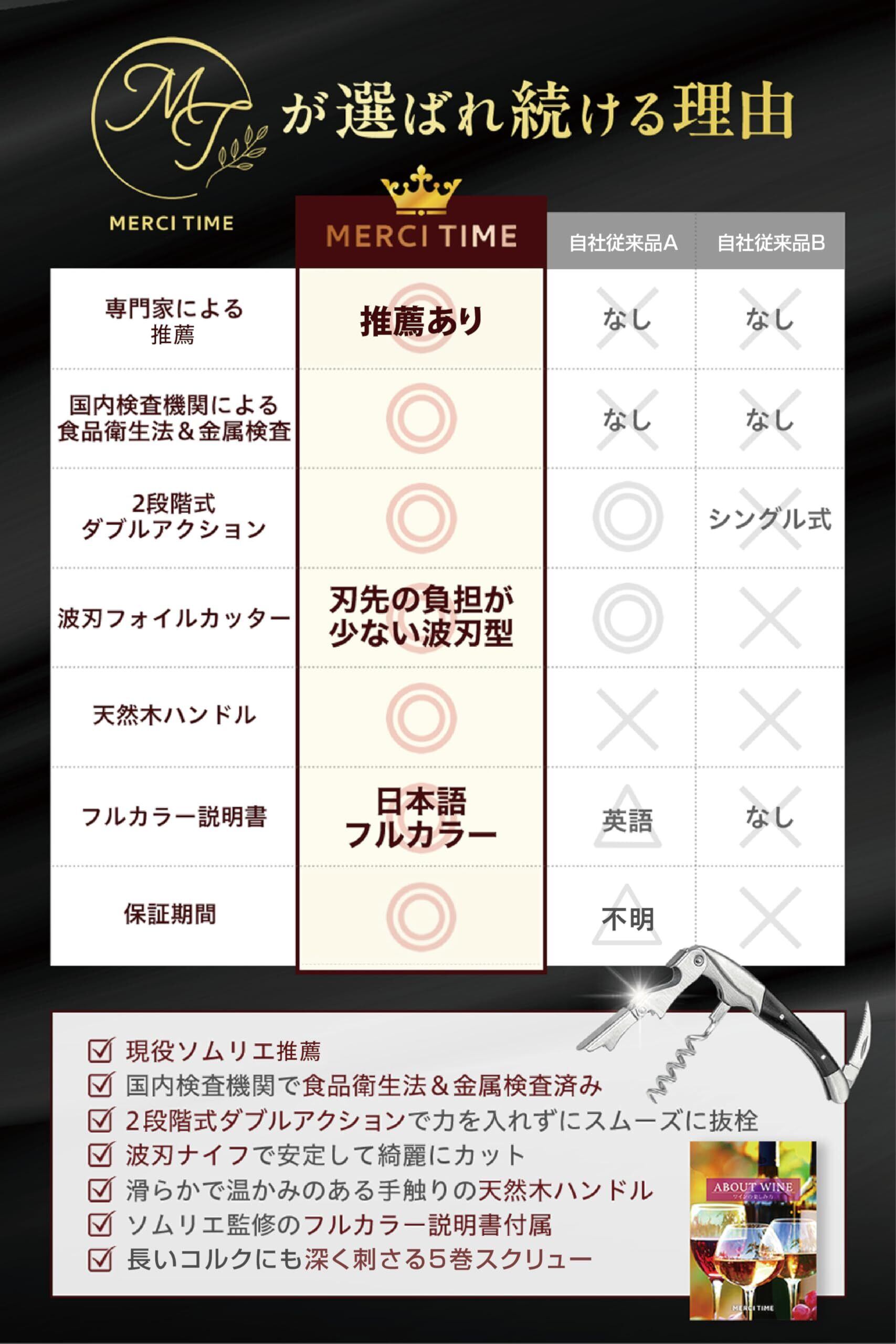 【2022最新】MERCITIME ソムリエナイフ ワインオープナー 栓抜き 2段階式 コルク抜き 簡単 ダブルアクション プレゼントにも 天然木ハンドル (エボニー)