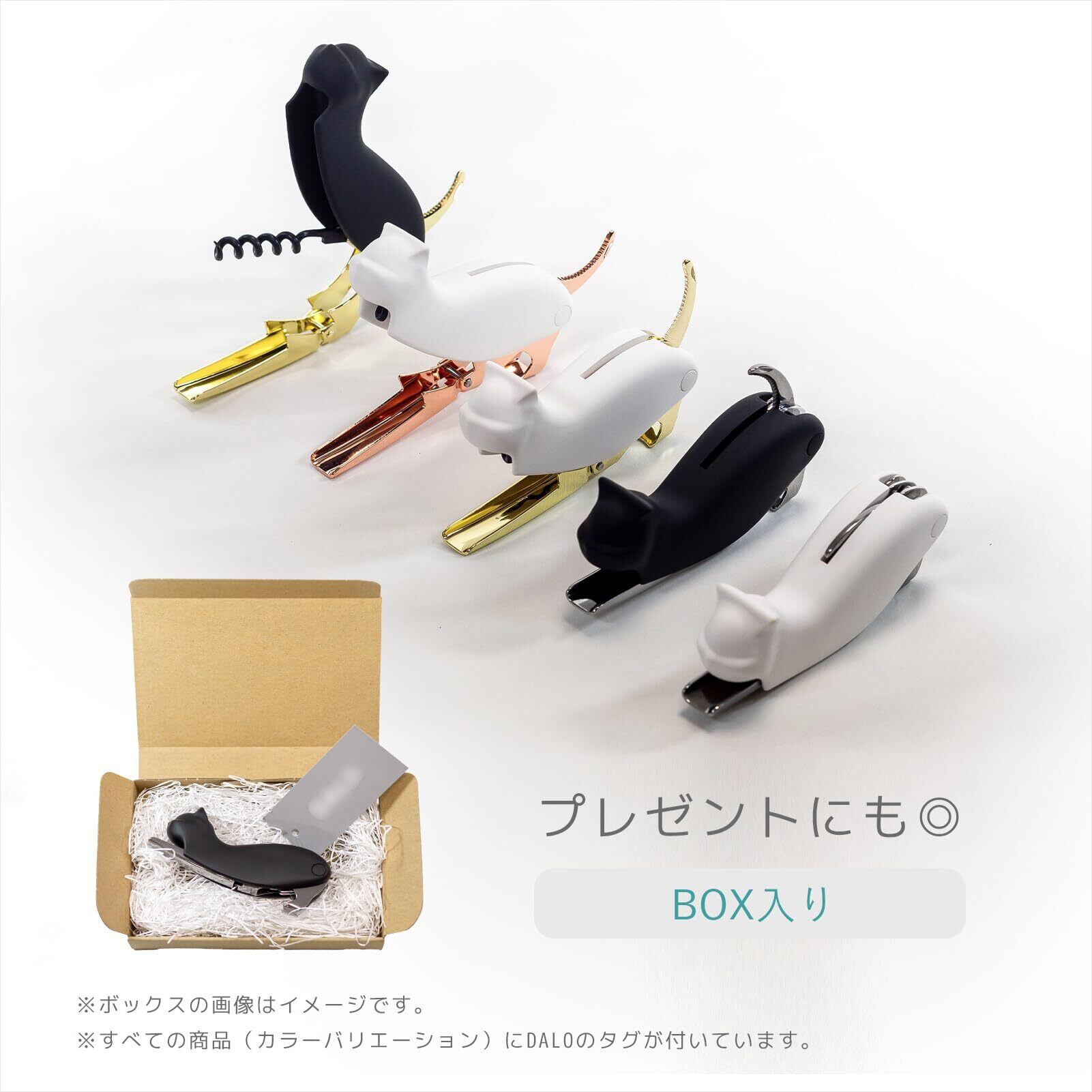 DALO ねこ型 ワインオープナー 2段式 ソムリエナイフ ネコ 多機能 コルク抜き 栓抜き (ブラック/シルバー)