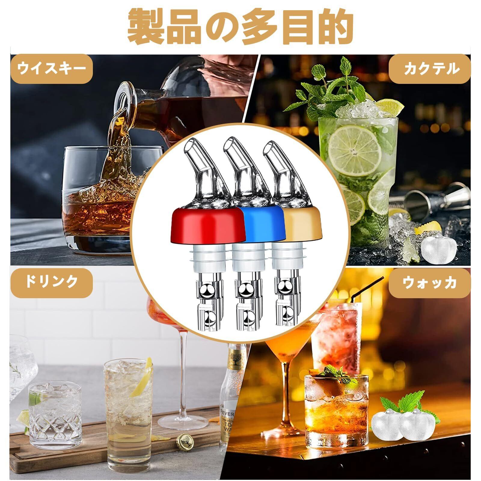 【多目的利用】液体が細かい流れで流れ出し、使用量を簡単にコントロールし、無駄を防ぎます。バー、レストラン、家庭など、さまざまな場面で多目的に使用できます。ワイン、ウィスキー、ウォッカ、テキーラなどのカクテルを調製する際の便利なアイテムです。