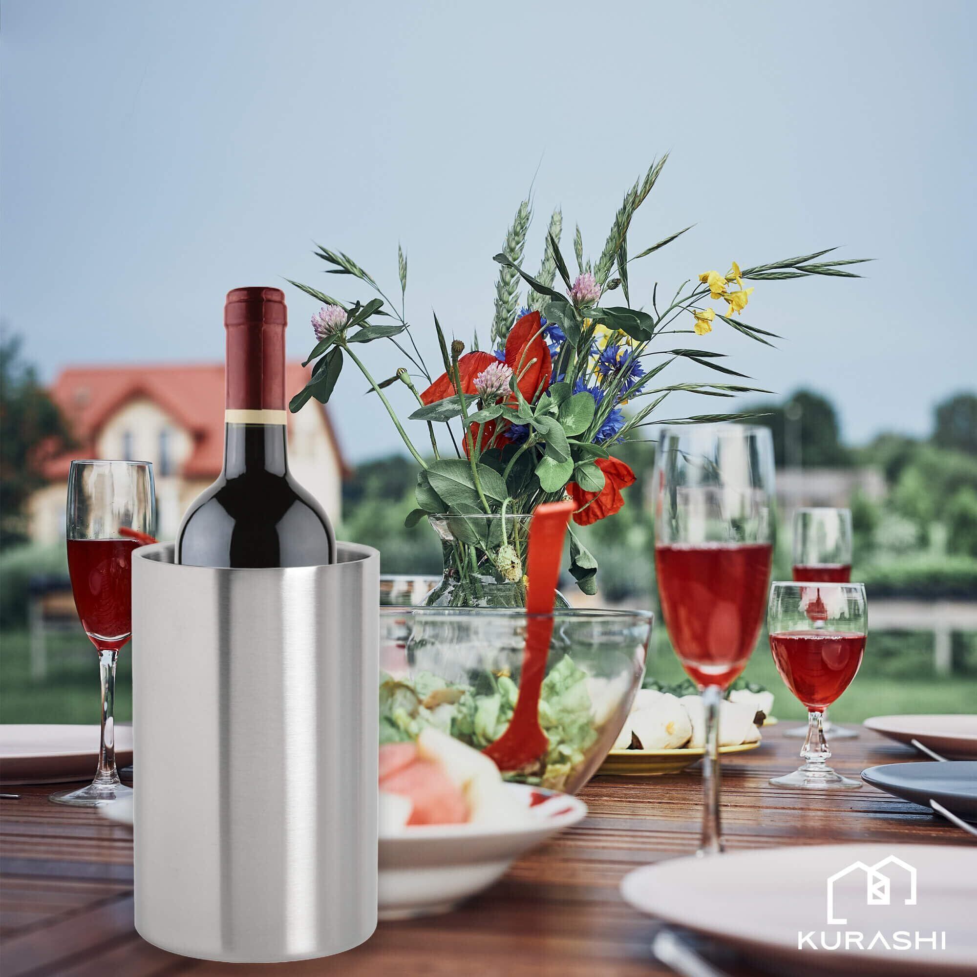 KURASHI ワインクーラー 卓上 ステンレス 二重構造 シャンパン ボトルクーラー 直径12cm×高さ19cm