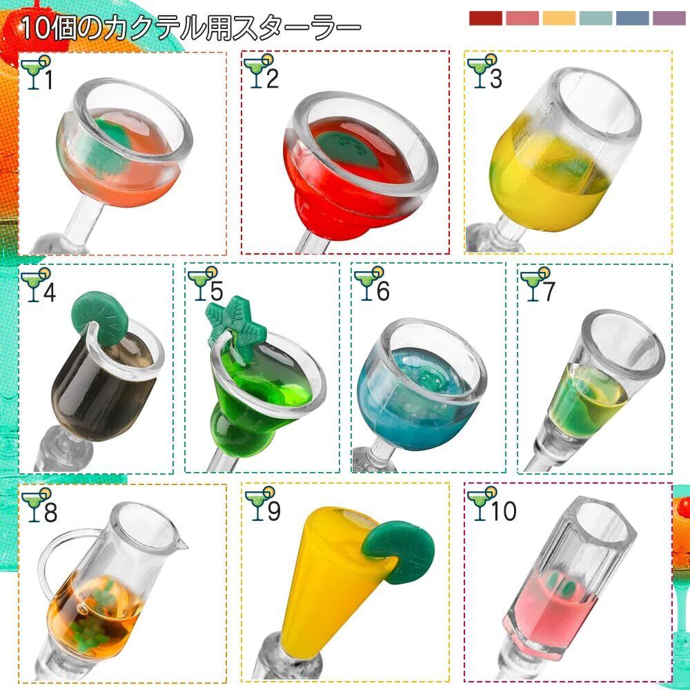 セット内容:攪拌棒10本セット;材質:アクリル;簡単なミキシング:カクテルスターラーの長さは約23cmで、カクテルやシェークを簡単にミキシングできます。常温の飲み物やアイスドリンクに適しています。