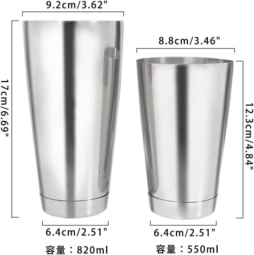 ボストンカクテルシェイカー 820mlと550ml (シルバー)