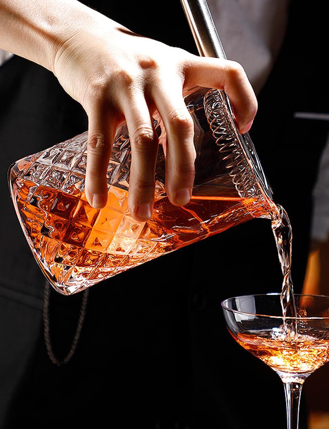 プロ仕様の底厚設計:ミキシングヘッドの底は入念に厚くされ、重みが加えられているため、全体的な質感を高めるだけでなく、ミキシングプロセス中の安定性とバランスにも優れ、ホームバーテンダーがプロのバーテンダーのような体験を楽しむことができます。