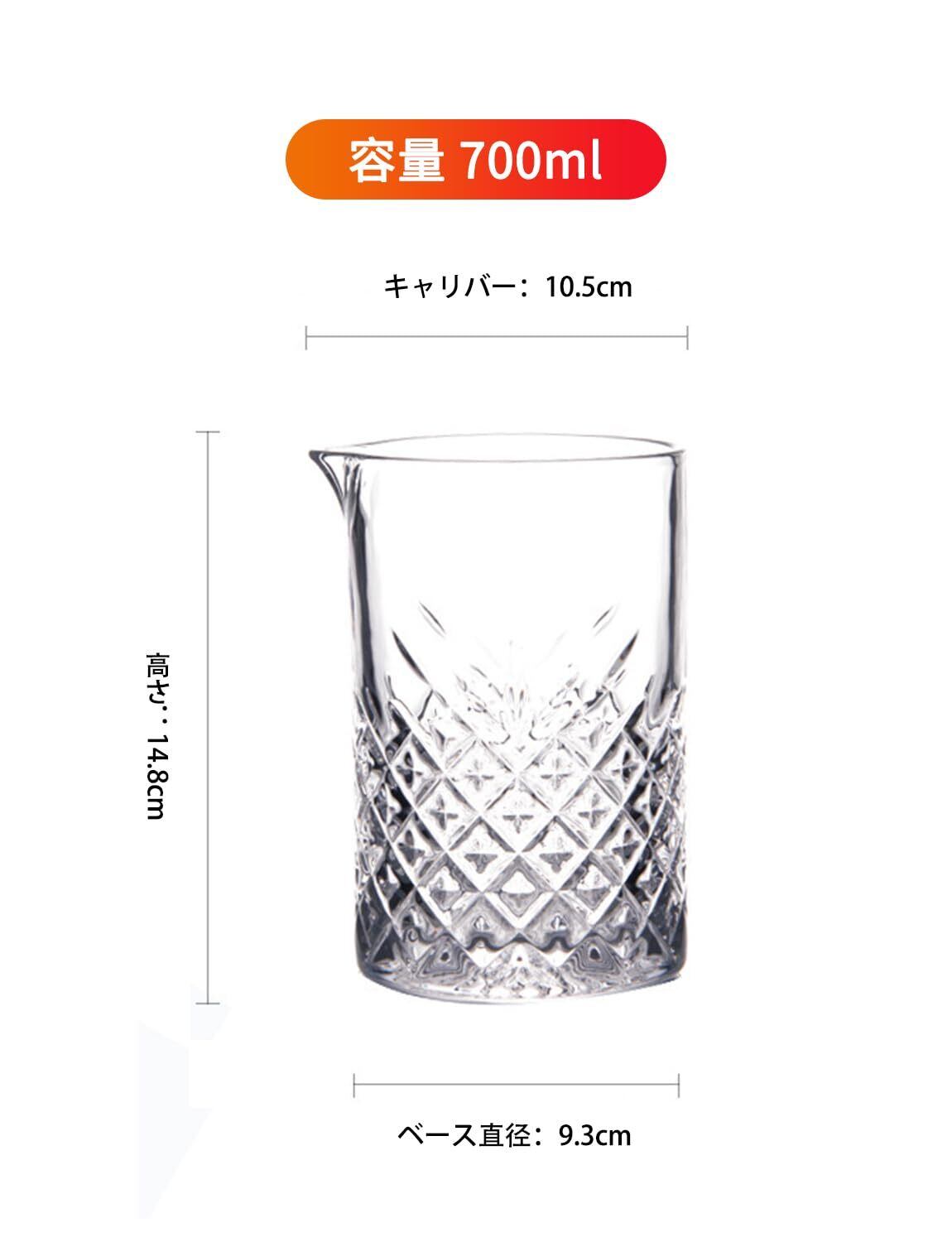 WIEXUNクリスタルミキシンググラス カクテルミキシンググラス プロ仕様 厚底 シームレス 700ml (オーロラ)