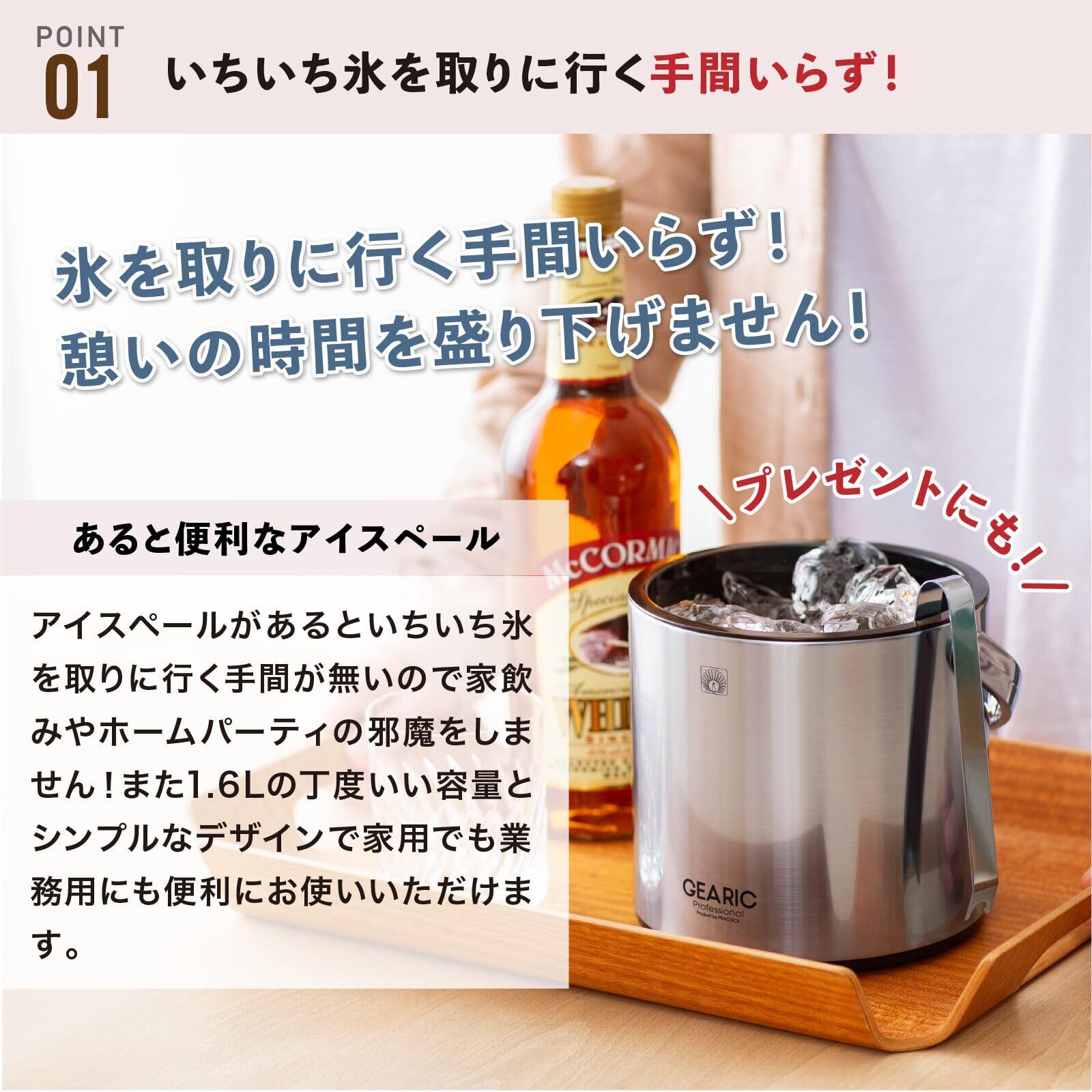 素材・材質:ふた/鋼 (クロームメッキ仕上)、内容器/ポリエチレン、銅/ステンレス鋼、アイストング/ステンレス鋼