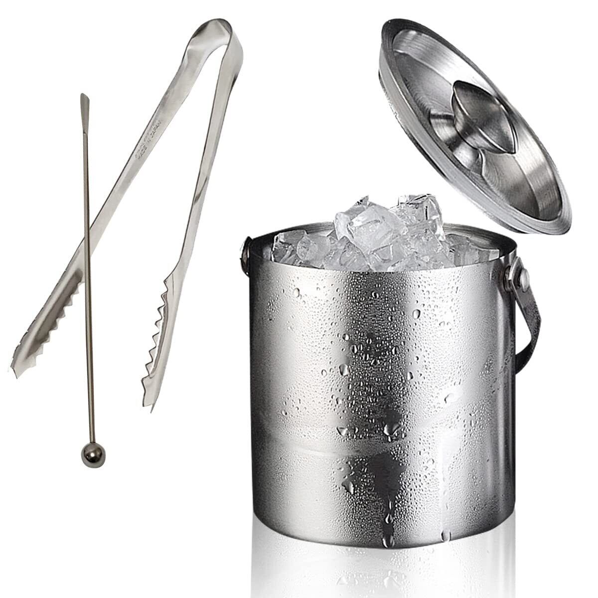 MMmall アイスペール 溶けない 二重アイスペール ステンレス 日本製アイストング マドラー付セット (シルバー, 2.0ℓ)
