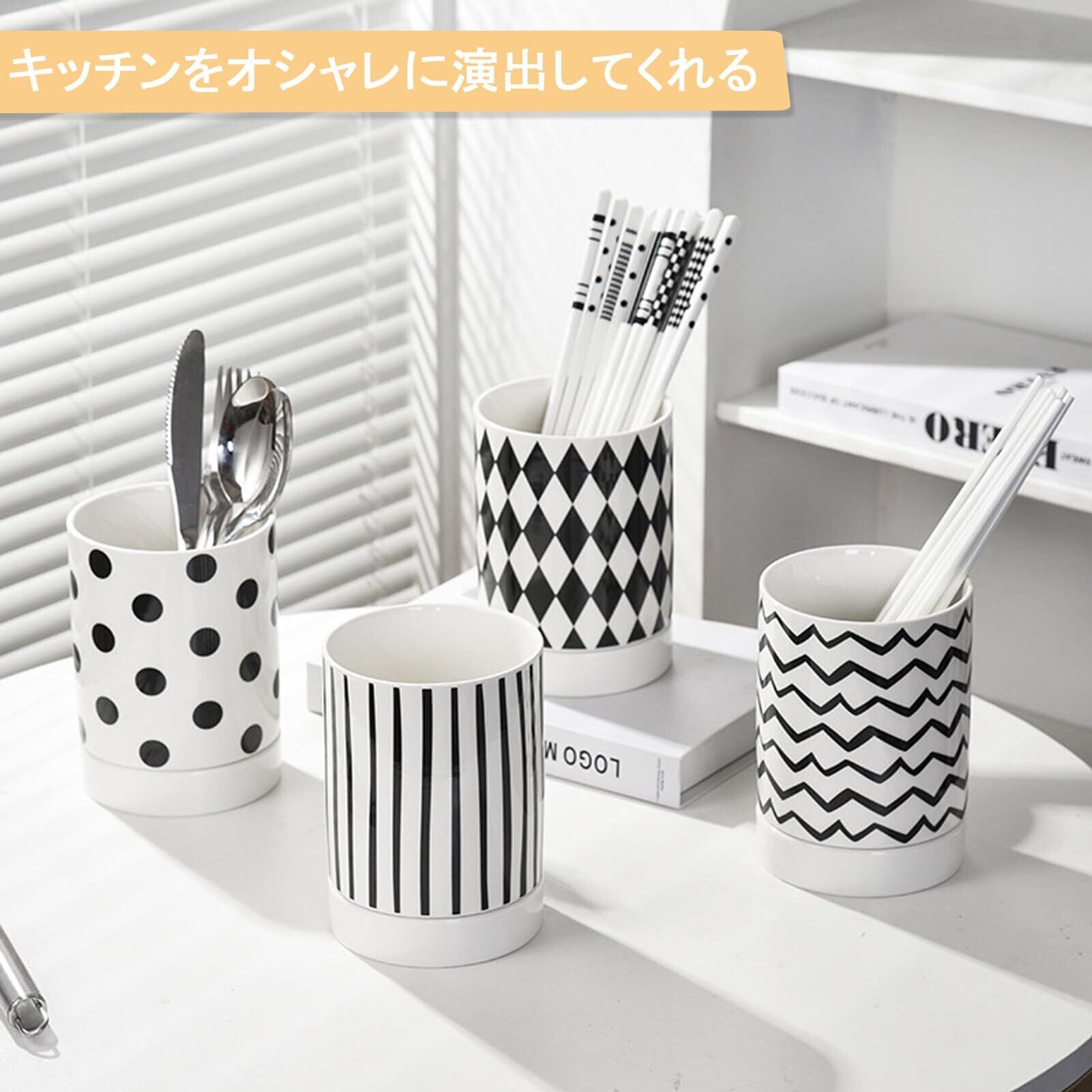 【特価セール】ELECTRO-WEIDEWORLD 箸立て おしゃれ 陶器製 箸スタンド 箸水切り お箸・スプーン・フォーク収納 セラミックス キッチン箸立て ツール立て キッチン カトラリー スタンド 食器 調理器具 キッチン収納 (波線)