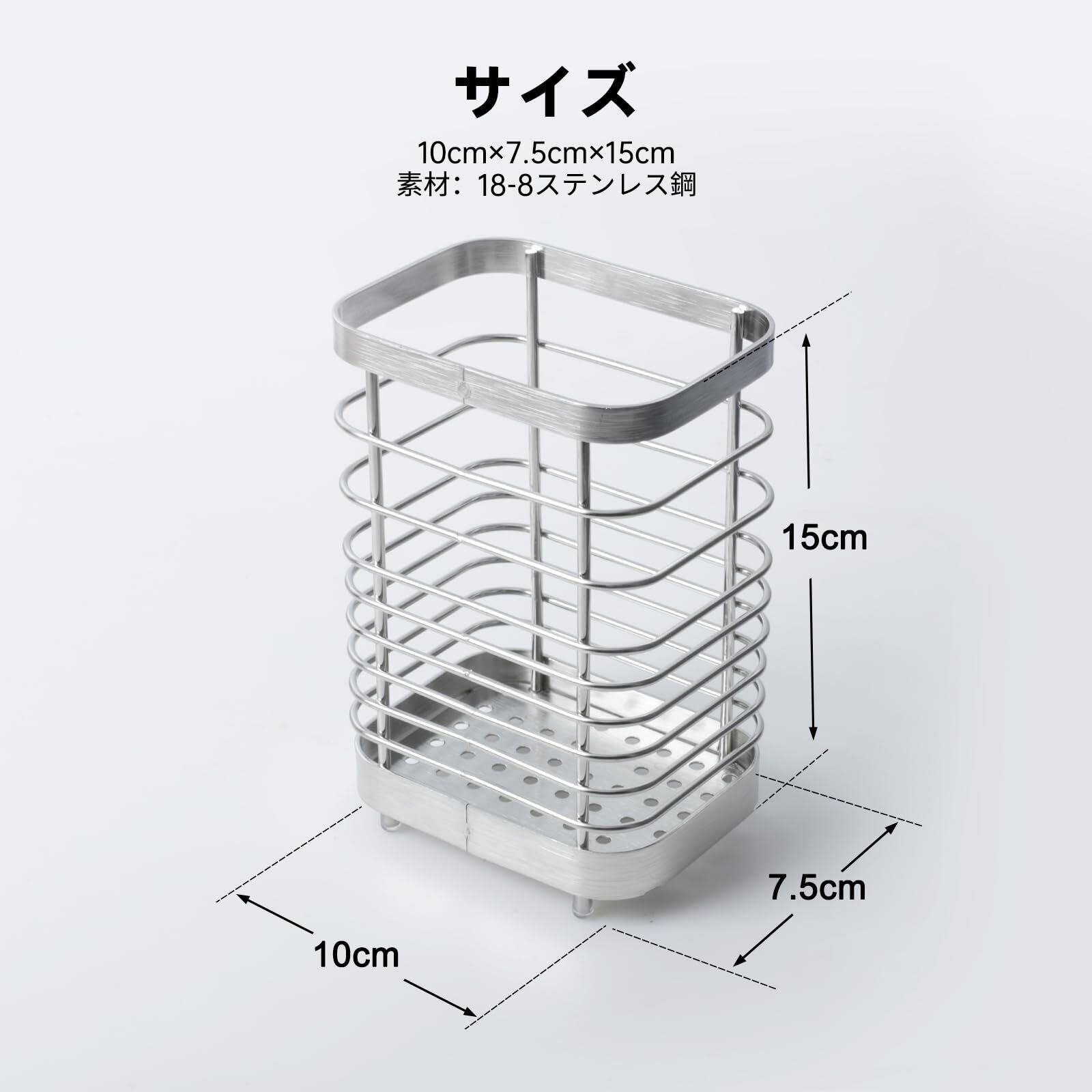 Toski 箸立て カトラリースタンド 箸入れ 18-8ステンレス製 防水 錆びにくい 箸 水切り 通気性が良い 防カビ キッチンツールスタンド 食器入れ 箸置き 調理器具 収納 省スペース 水切りラック 箸 スプーン フォーク対応 シルバー