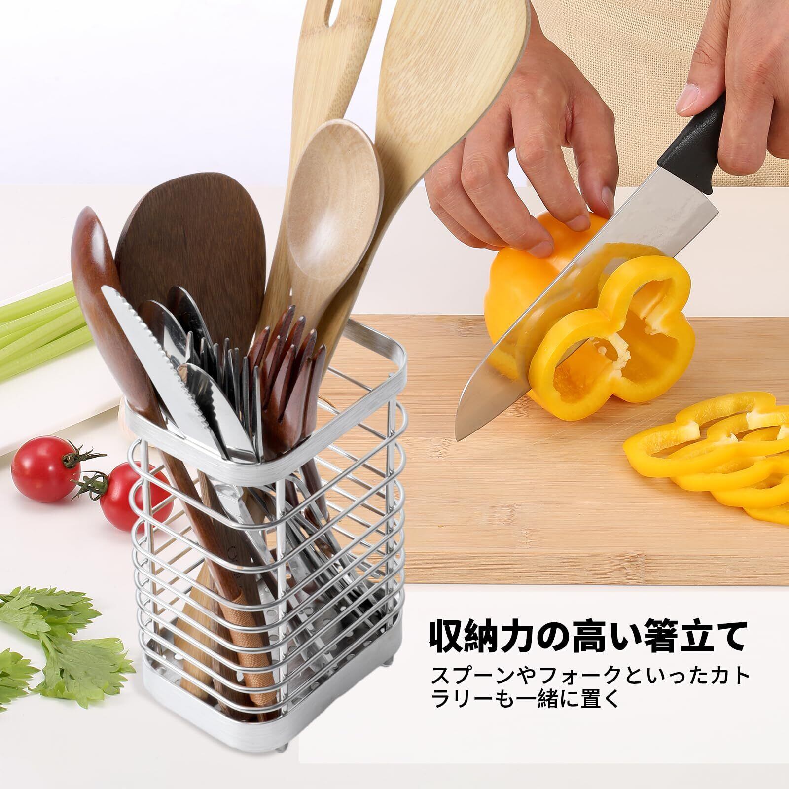 Toski 箸立て カトラリースタンド 18-8ステンレス製 キッチンツールスタンド 水切り シルバー