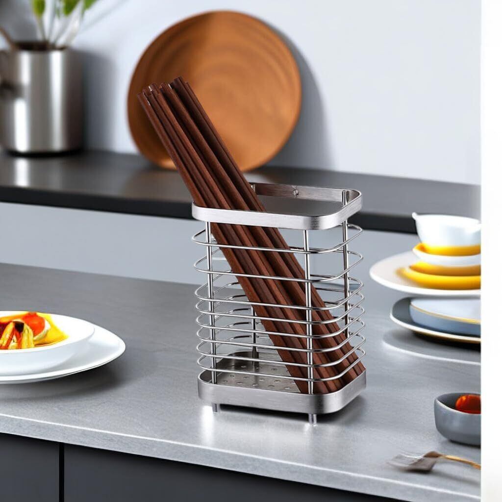 【特価セール】はしたて 箸置き 箸入れ 箸立て スプーンラック フォーク収納 キッチンツールスタンド カトラリースタンド キッチン用品 収納便利 (Lサイズ銀色)