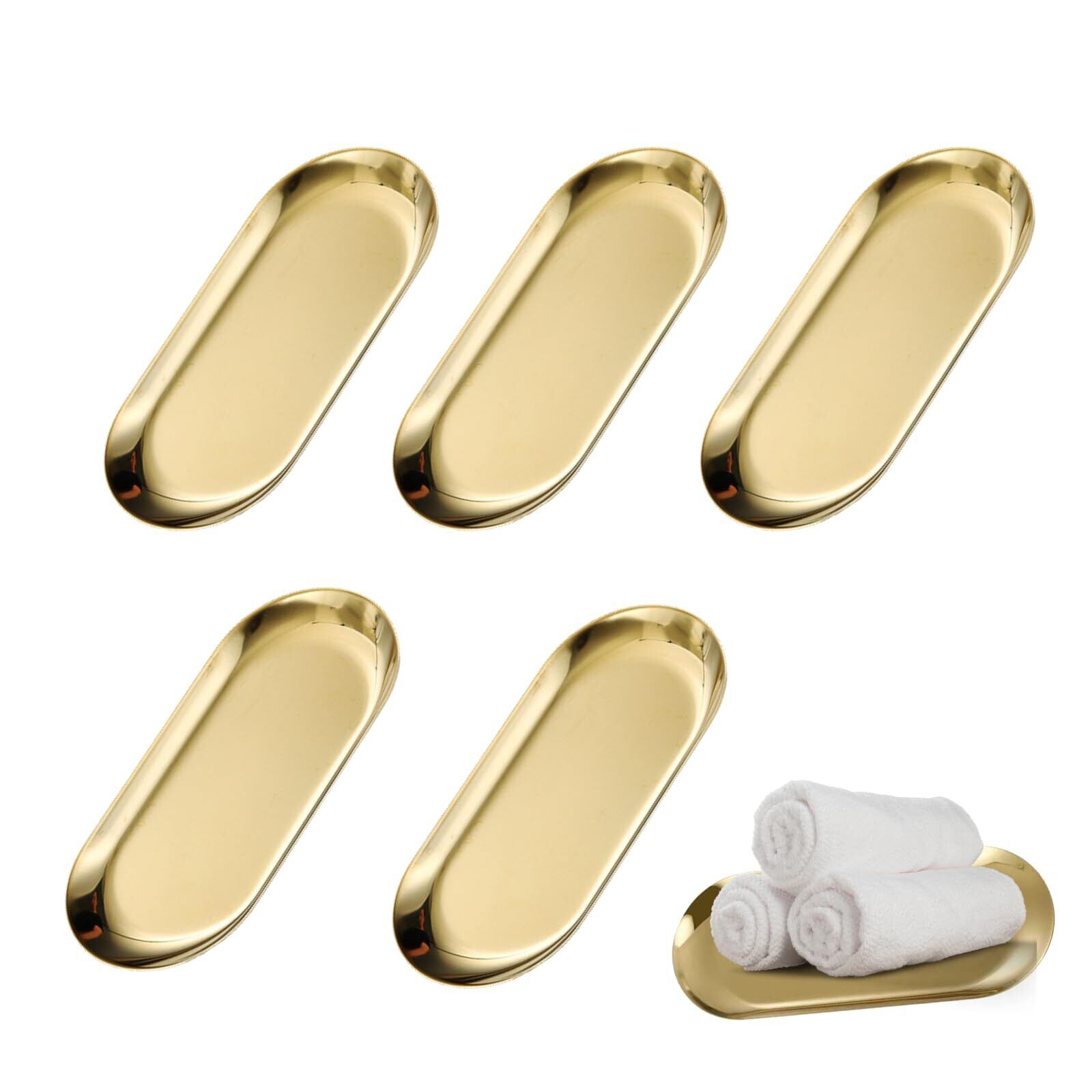 HAPPY SUGAR おしぼりトレー ゴールド 高級 ステンレストレー ステンレス 小物置き 小 おしぼり置き おしゃれ 飲食店 キャッシュトレイ5枚セット (ゴールド)