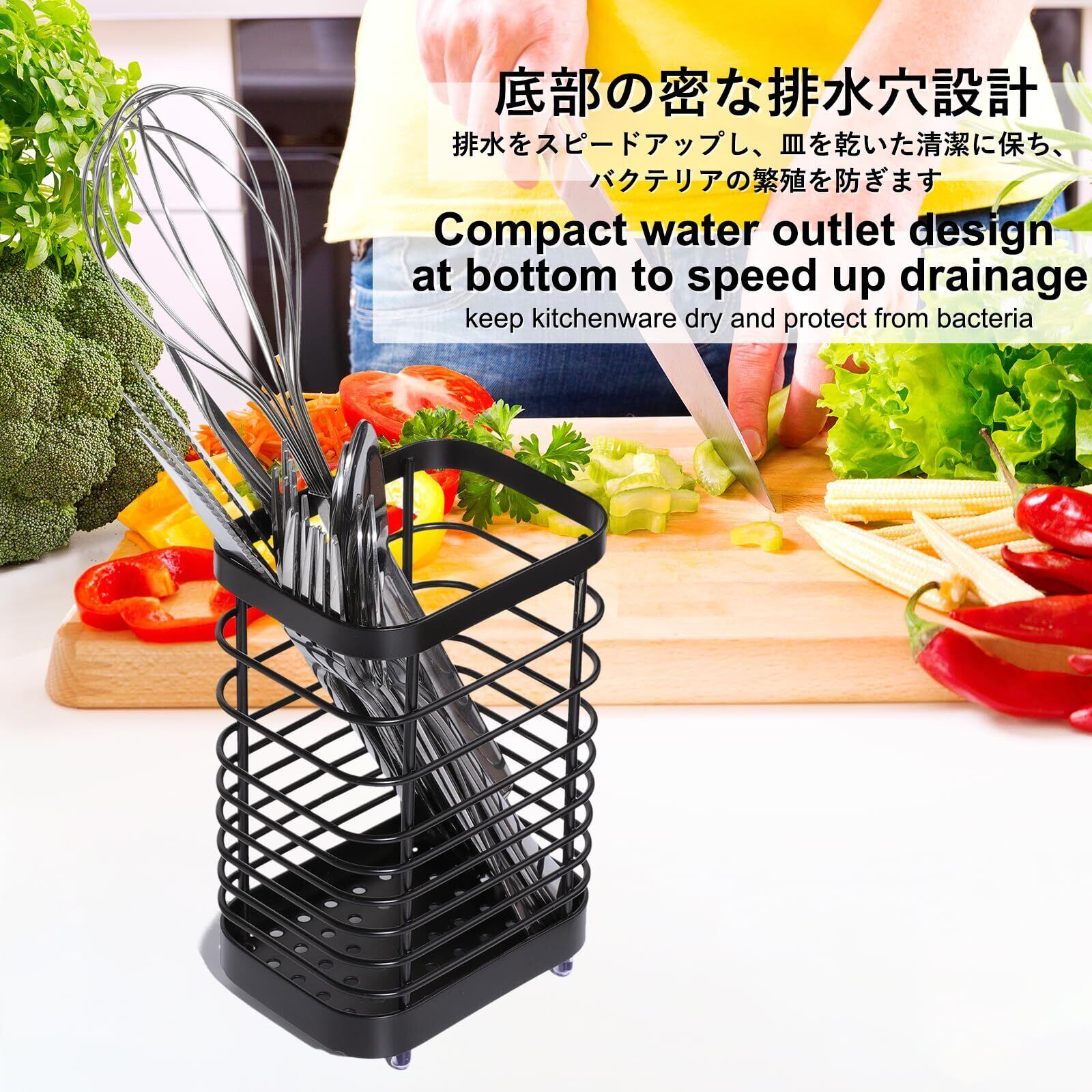 【多用途適用】箸、スプーン、フォーク、お玉、しゃもじなどキッチンの基本アイテムを一括に収納でき、その他小さな調理用品に最適です。文房具の収納ホルダーとしても使えます。