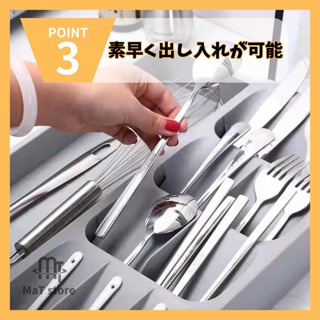 MaT store カトラリーケース カトラリー収納 箸入れ 引き出し収納 仕切りトレー グレー キッチン収納 整理整頓 一人暮らし ファミリー向け グレー