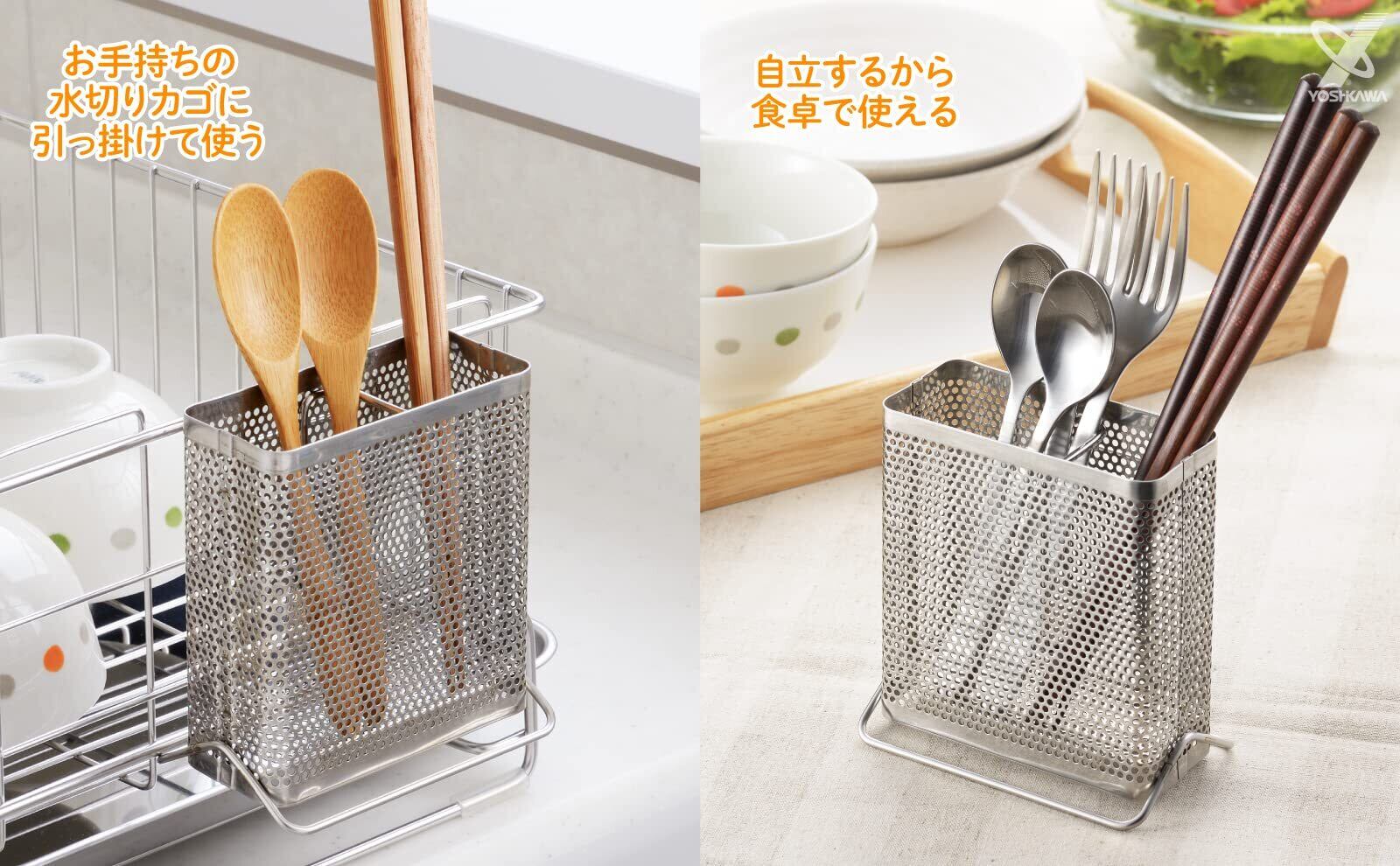 ヨシカワ カトラリーポケット カトラリーケース ステンレス 箸 大容量 幅10cm×高さ10.5cm コンパクト シンク上 日本製 1621046