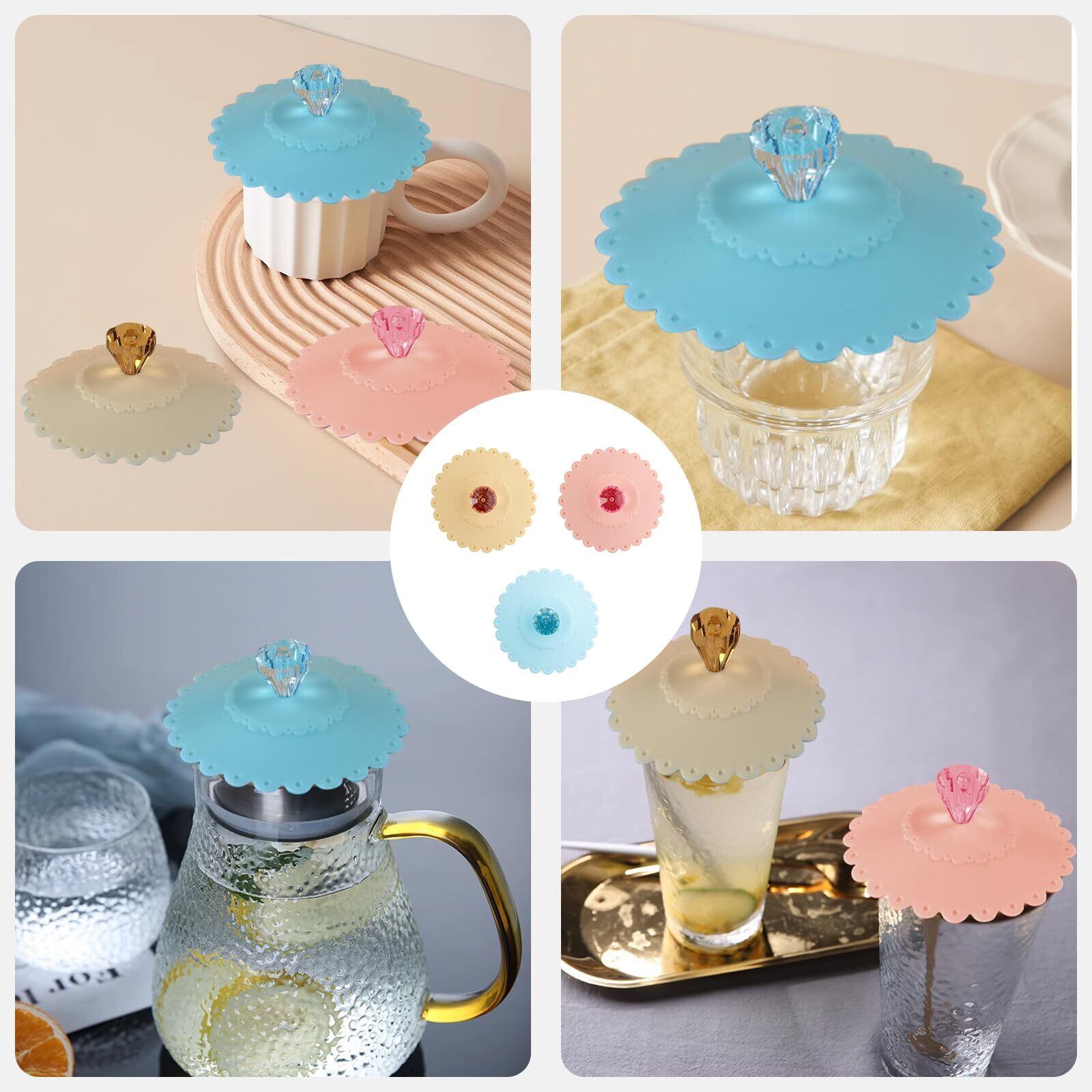 【詳細サーズ】カップカバーの直径は10.5cmで、大きなダイヤモンドの高さは2.4cmです。このカップの蓋は、ほとんどのカップに適用できます。 カップカバーにはピンク、青、黄色の3つの色があります。カップカバーのダイヤモンドは取り外し可能で、お気に入りのスタイルを自由に組み合わせることができます。