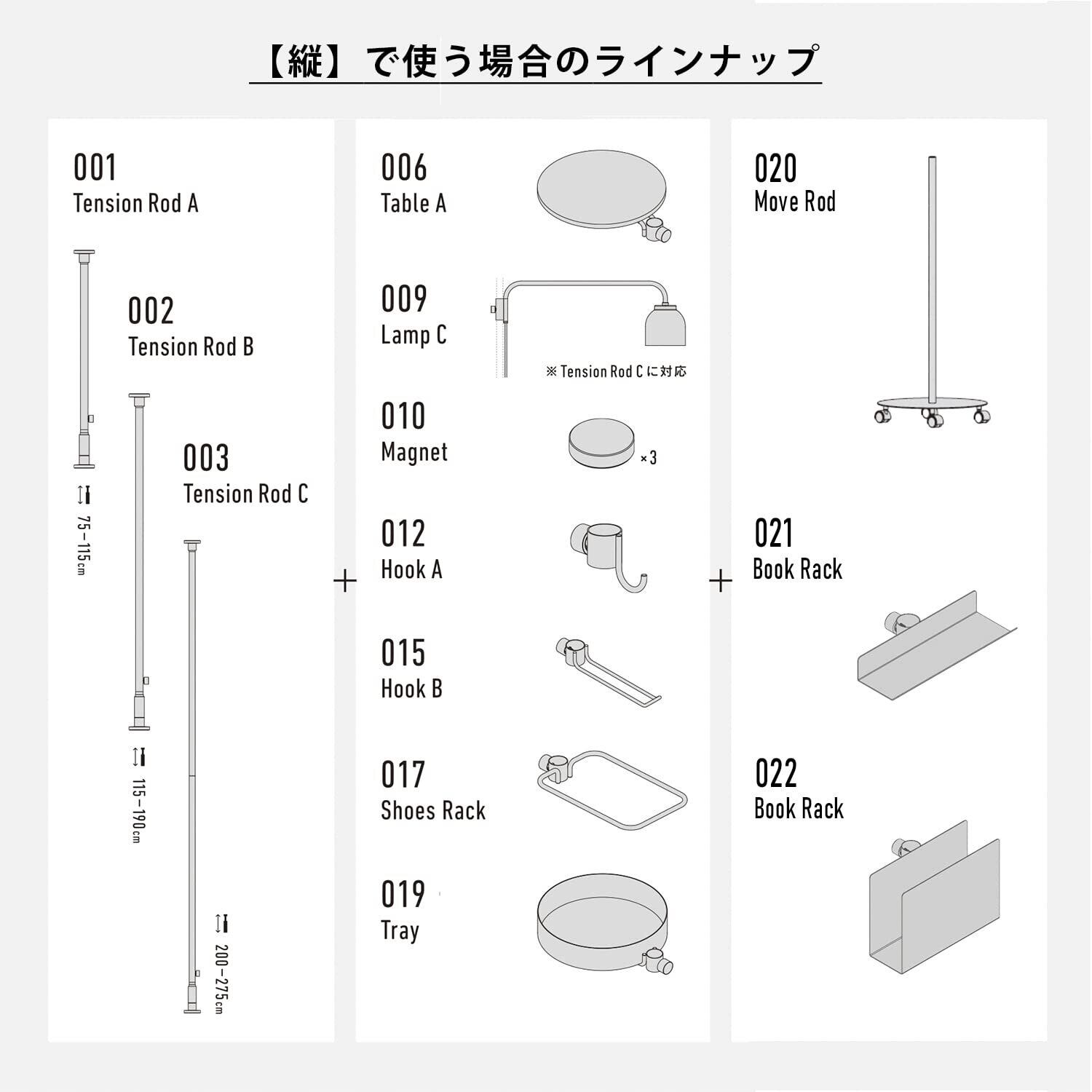 ●Tension Rod/Move Rodの耐荷重は本製品を1kgとして計算してください。