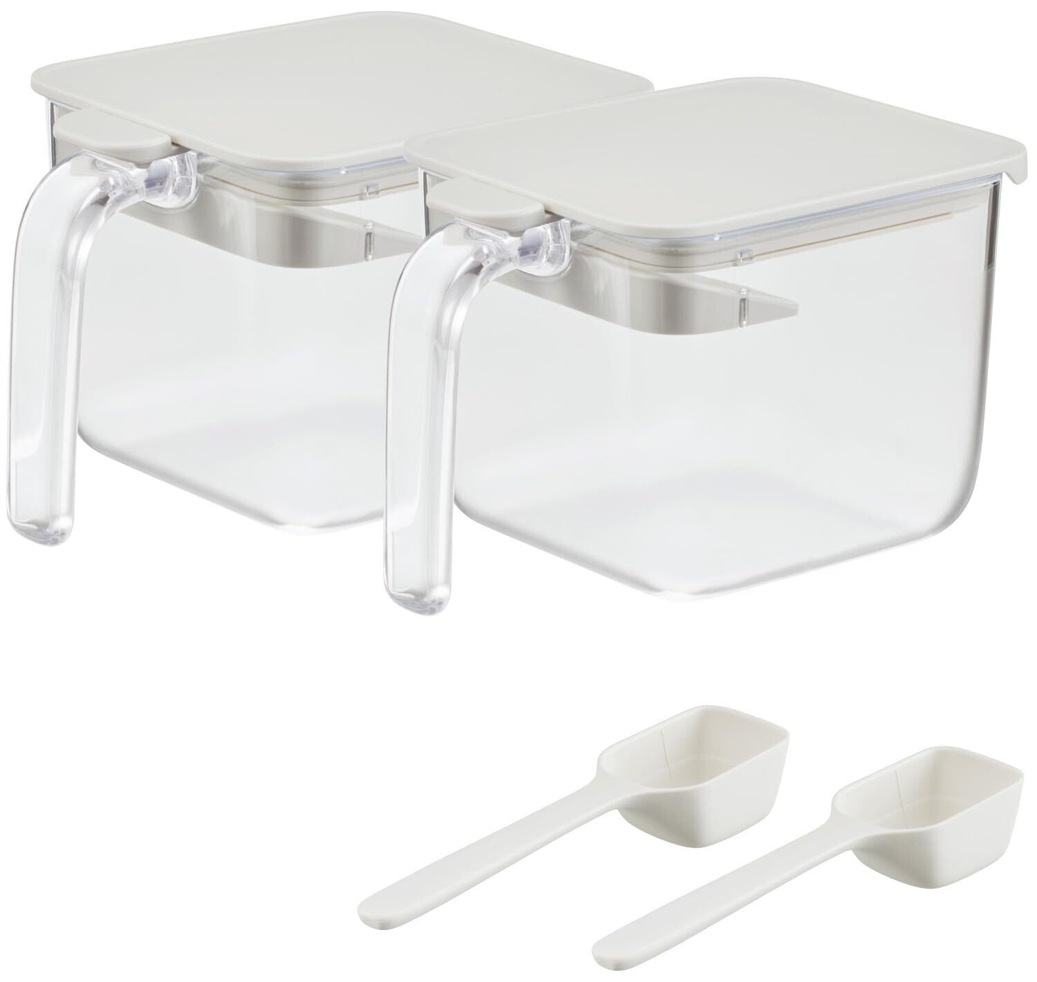 【在庫セール】マーナ (marna) 調味料ポット スプーン付き (ワンタッチで開く) 調味料入れ (パッキン付 湿気防止) 塩 砂糖入れ (ワイド / 2個入り / ホワイト) グッドロックコンテナ R305W