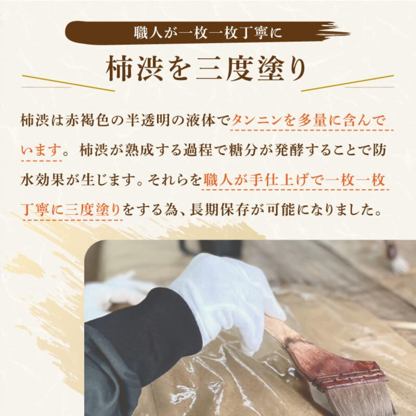 【天然柿渋の力】お米の鮮度を長くキープ…天然柿渋に含まれる「防虫・抗菌・防腐・防臭」の4つの作用で、常温でもお米をしっかりと守ります。防腐剤や添加物を使わず、安心して長期保存が可能です。