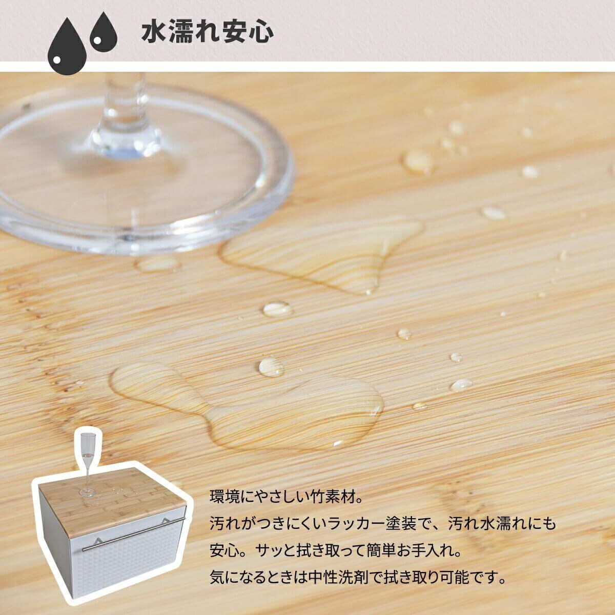 【素材】本体・扉:スチール(エポキシ粉体塗装)、天板:バンブー集成材(ラッカー塗装)、取っ手:ステンレススチール