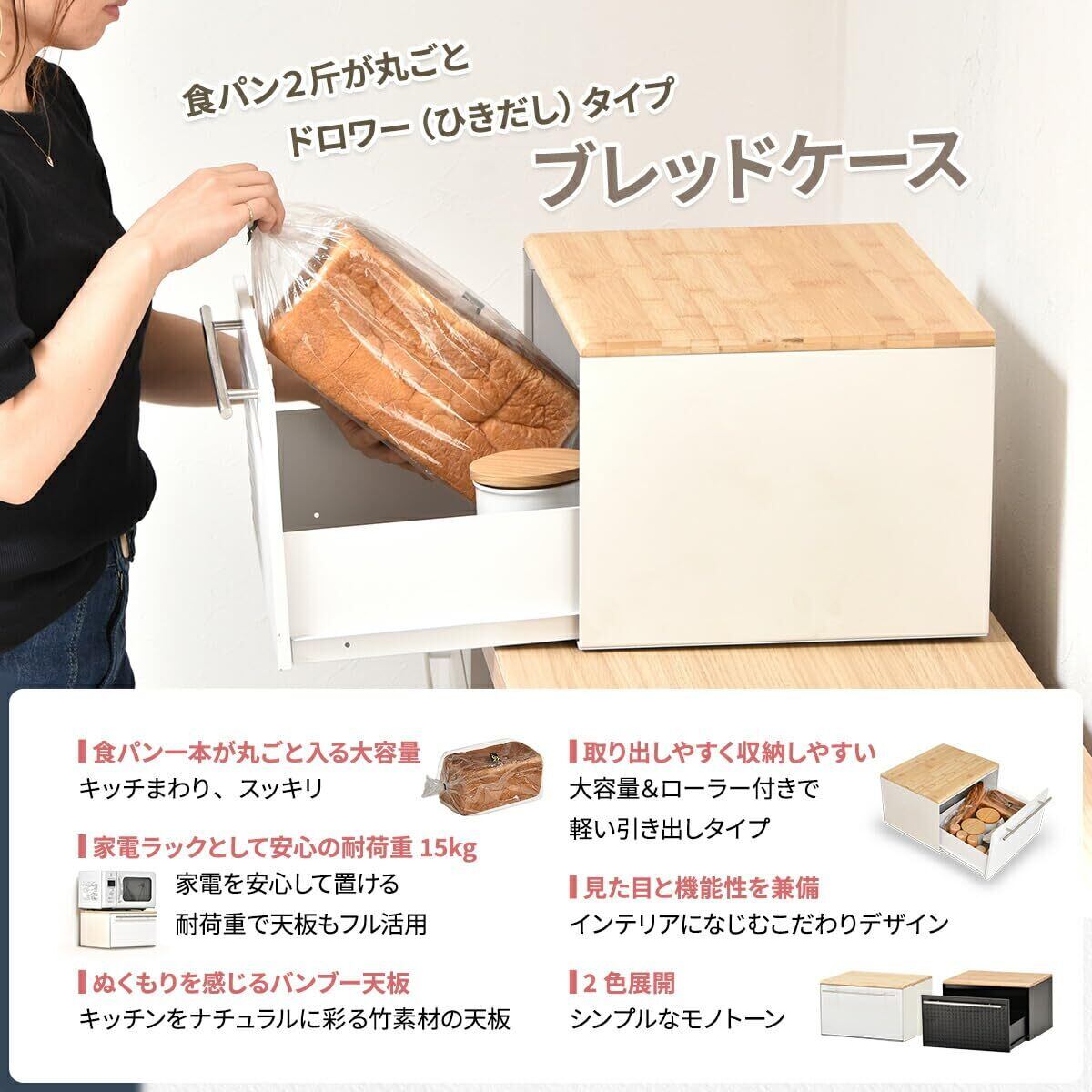 FunFun TREE 引き出し ブレッドケース 幅40cm 奥行35cm 高さ25cm ホワイト 白 キッチン収納 ストレージ おしゃれ 北欧 パンケース 木製 ドロワーブレッドケース 高さ25cmキッチン収納 収納 パン入れ 整理ボックス