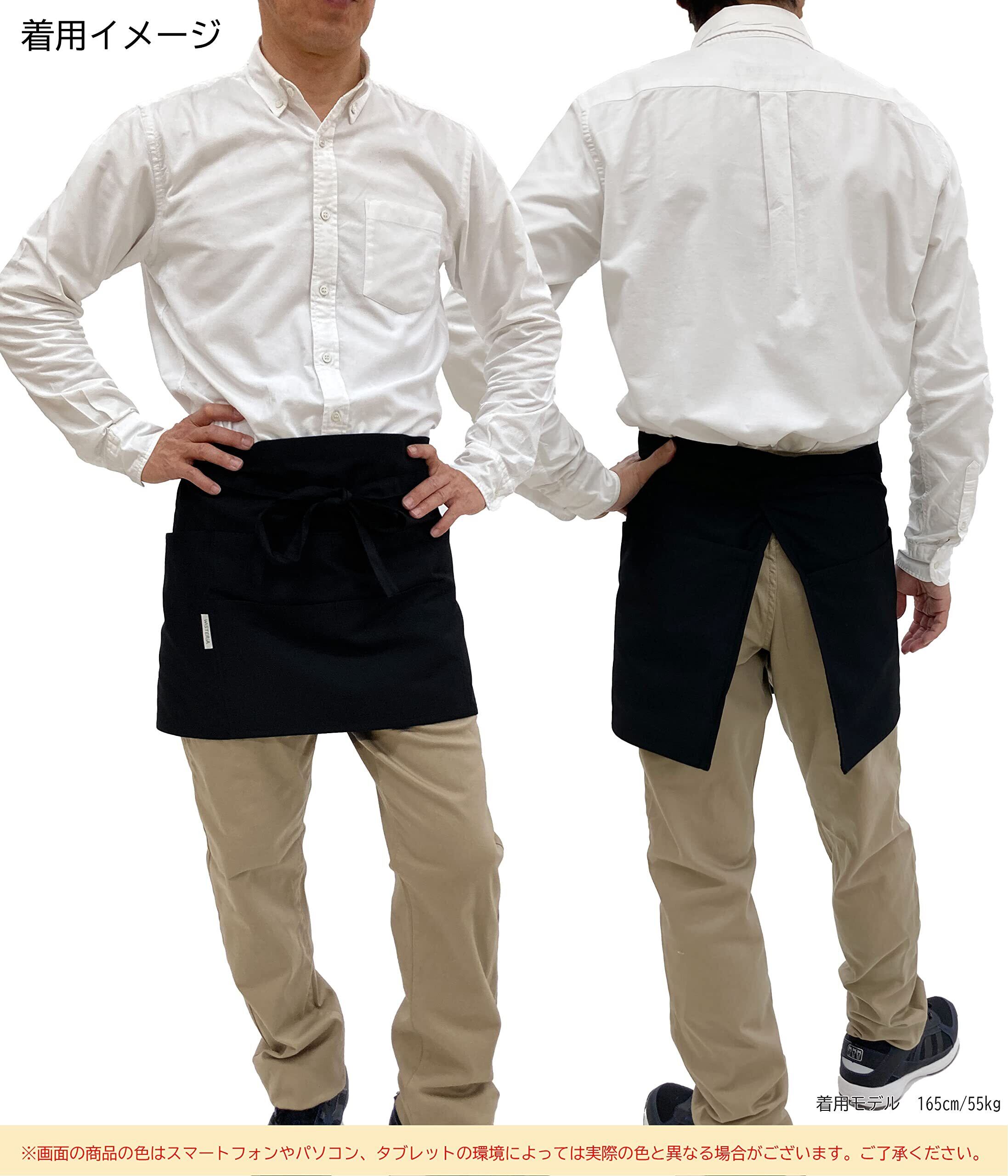 エプロン ショート丈 綿混 腰前掛けタイプ フリーサイズ 102 (ブラックA)
