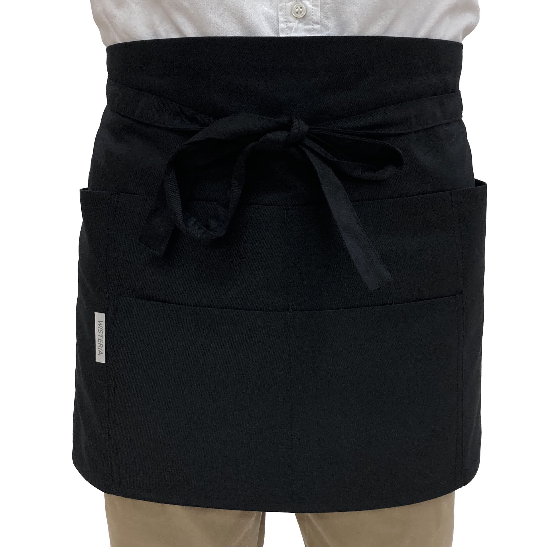 【在庫セール】エプロン ショート丈 綿混 腰前掛けタイプ フリーサイズ 102 (ブラックA)