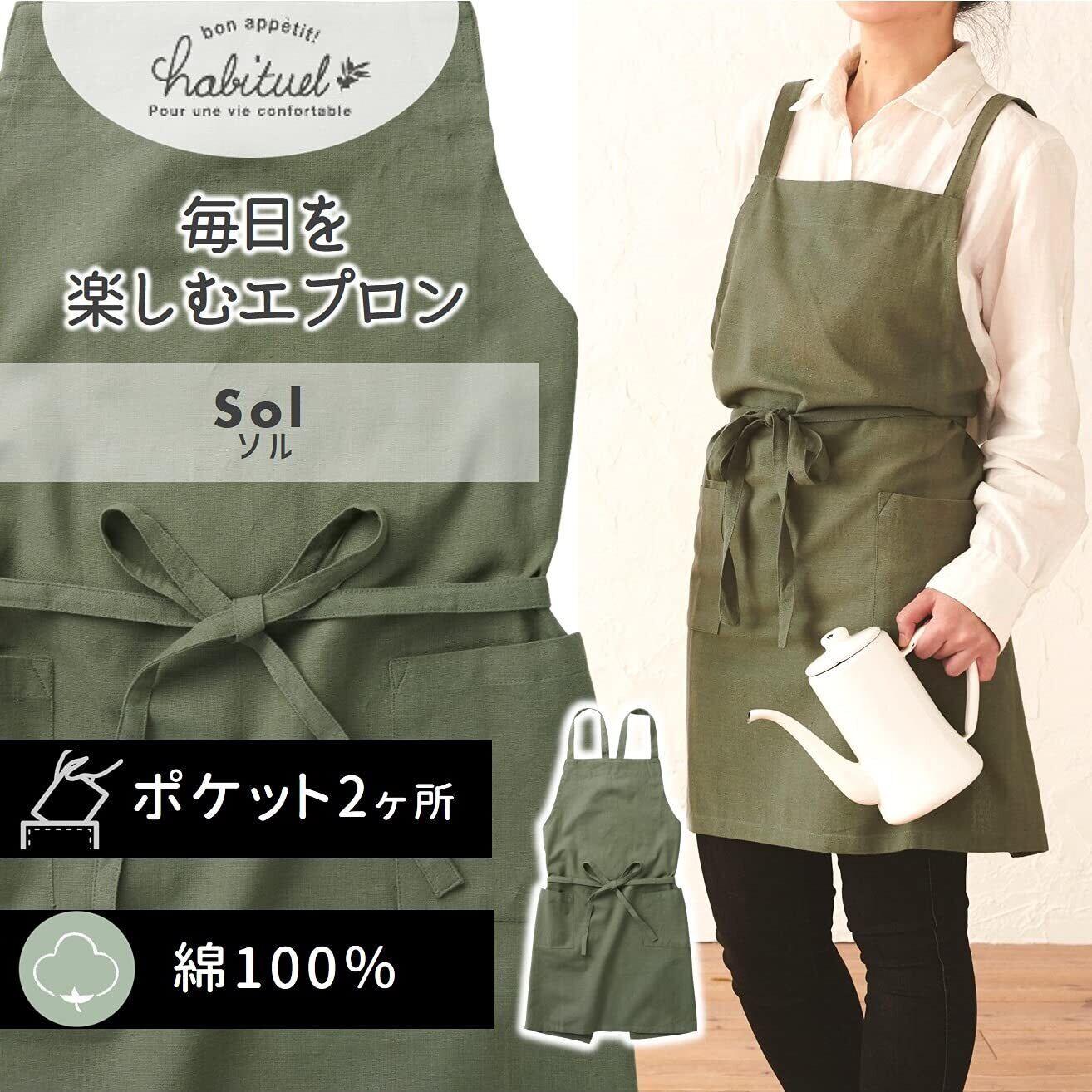レップ(Rep) エプロン 北欧 ポケット2個付き カフェエプロン 大人用 着丈73cm (アビチュアル ソル) カーキ 1313 KHAKI プレゼント