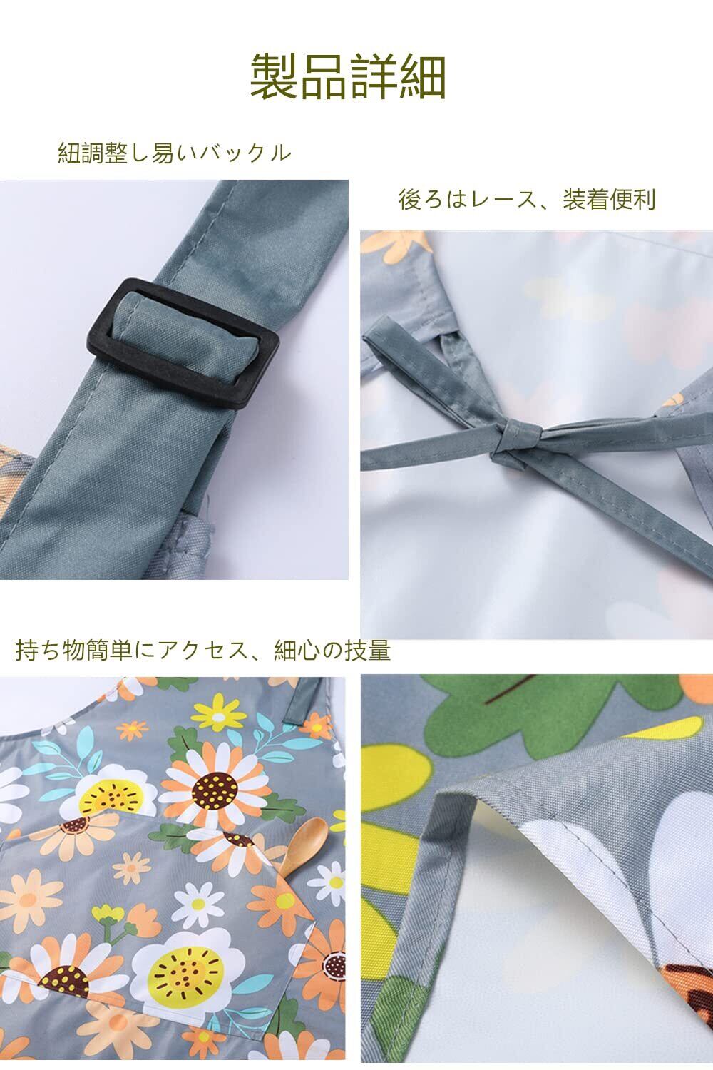 【数量限定】エプロン 首掛け シンプル北欧風大容量ポケット付けき 花柄 防水 汚れにくい シワ防止 料理教室用 カフェ 保育士 大人