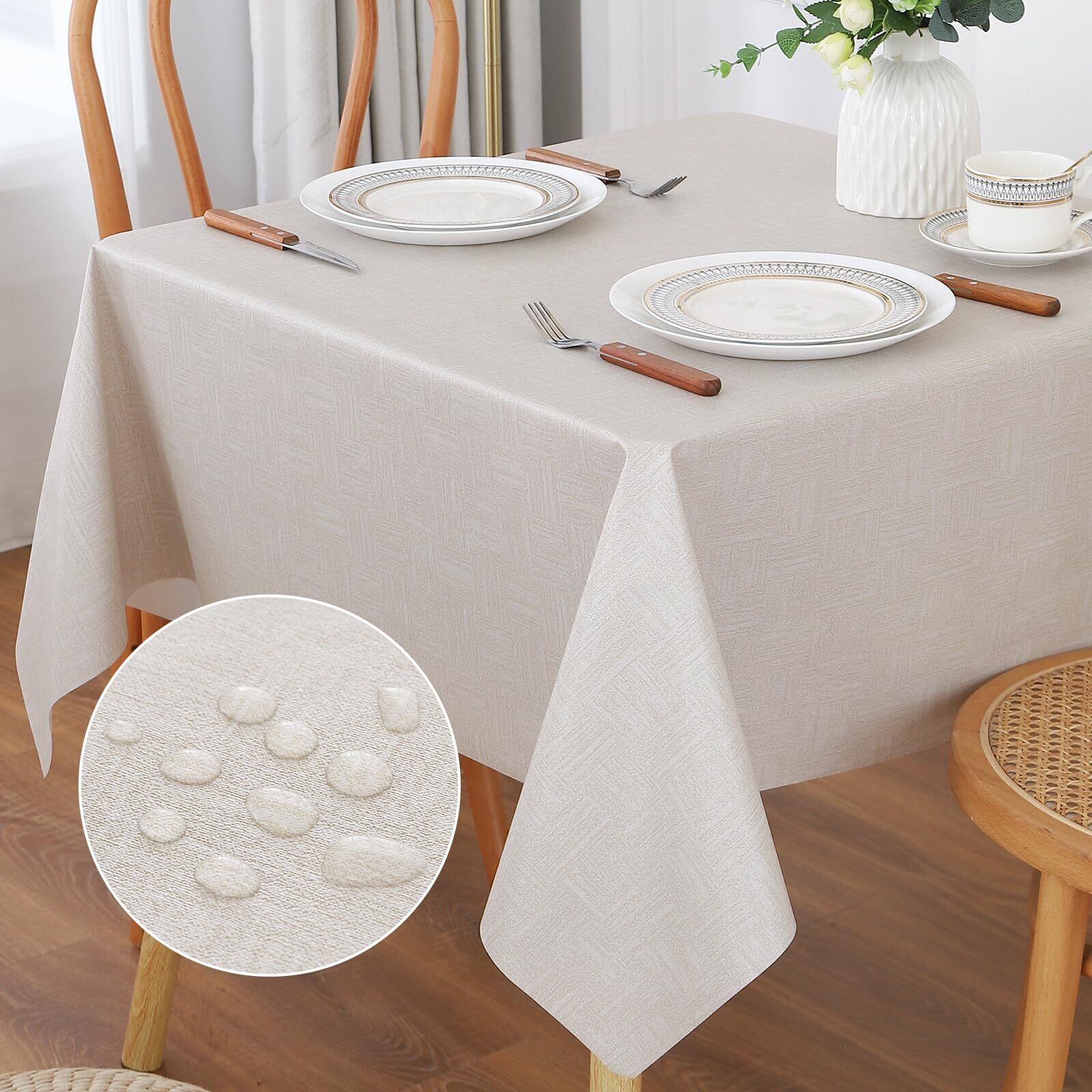 【新春セール】AooHome テーブルクロス ビニール 撥水 正方形 おしゃれ テーブルカバー 北欧 防水 防油 汚れ防止 90cm×90cm 小さい テーブルマット PVC製 木目 北欧 お手入れ簡単 ベージュ